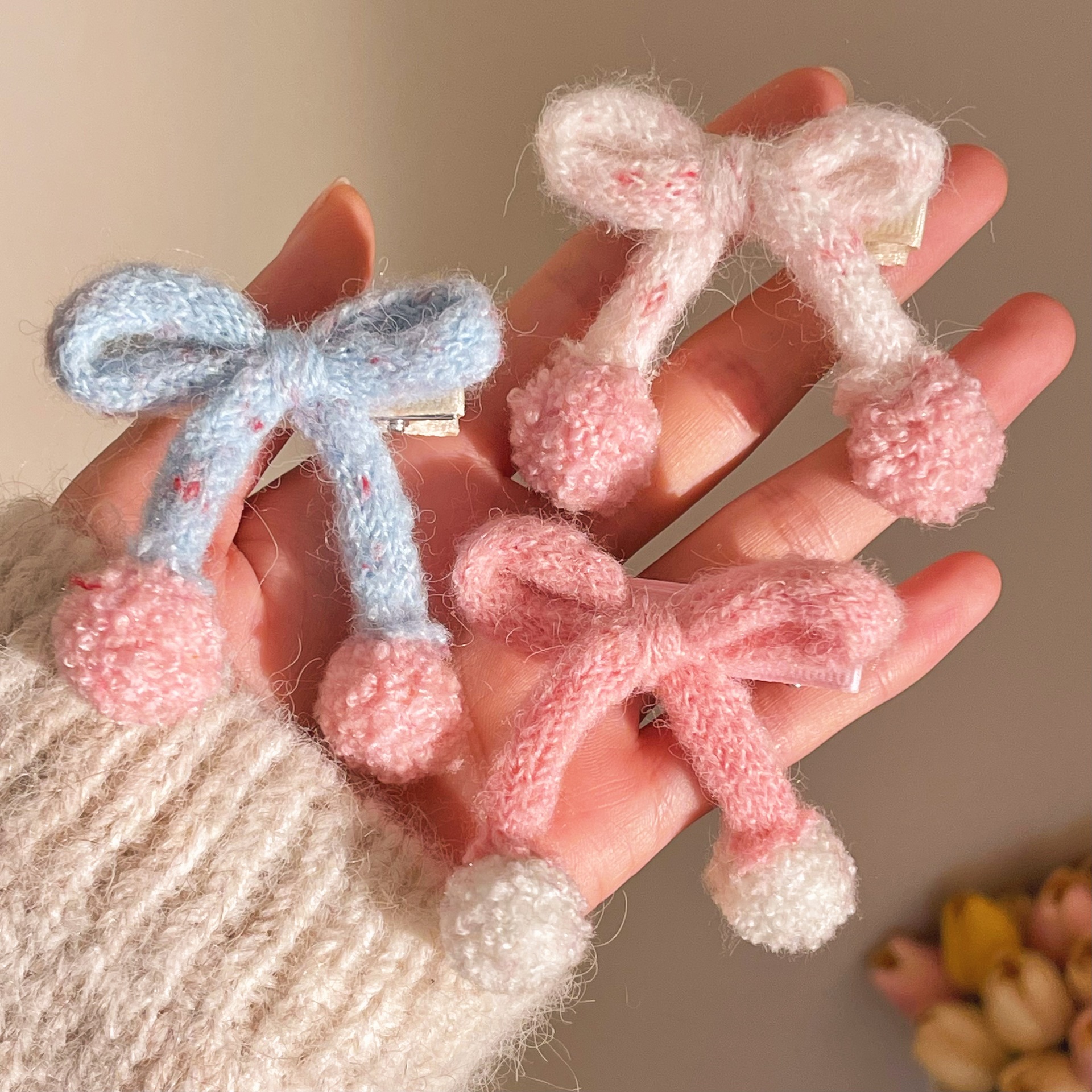 新商品の甘い蝶結びの毛玉の一字はニットの少女の心の前髪のサイドを挟んでカラーを挟みます。