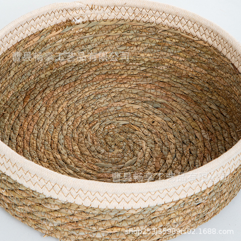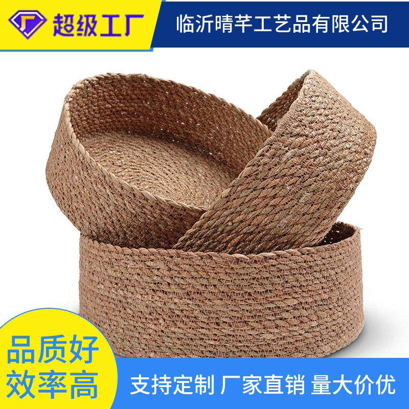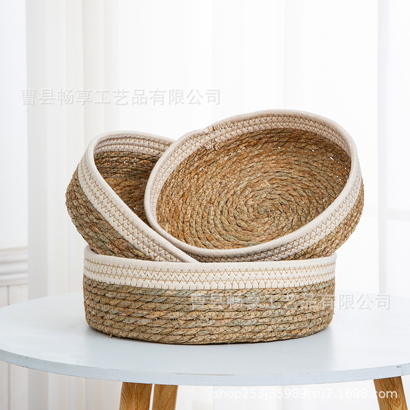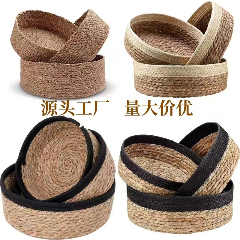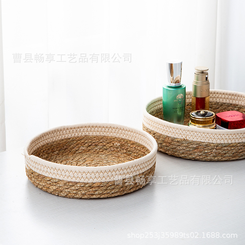 収納バスケット編みバスケット整理収納草編み化粧品収納蒲草編みおやつ収納テーブル収納バスケット