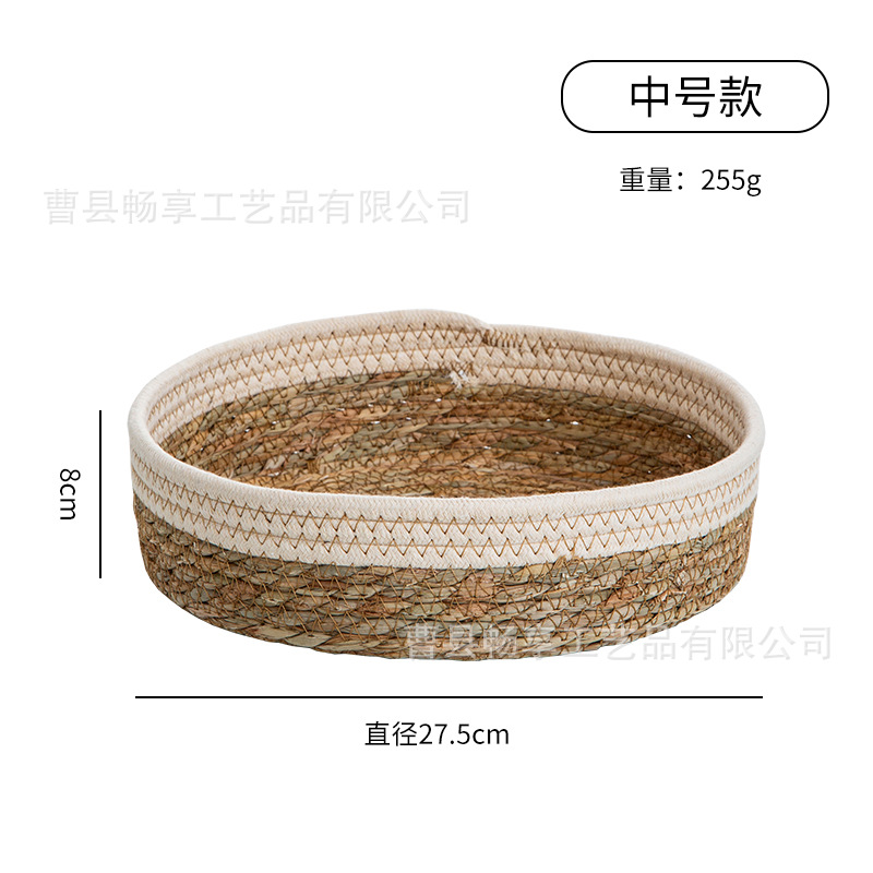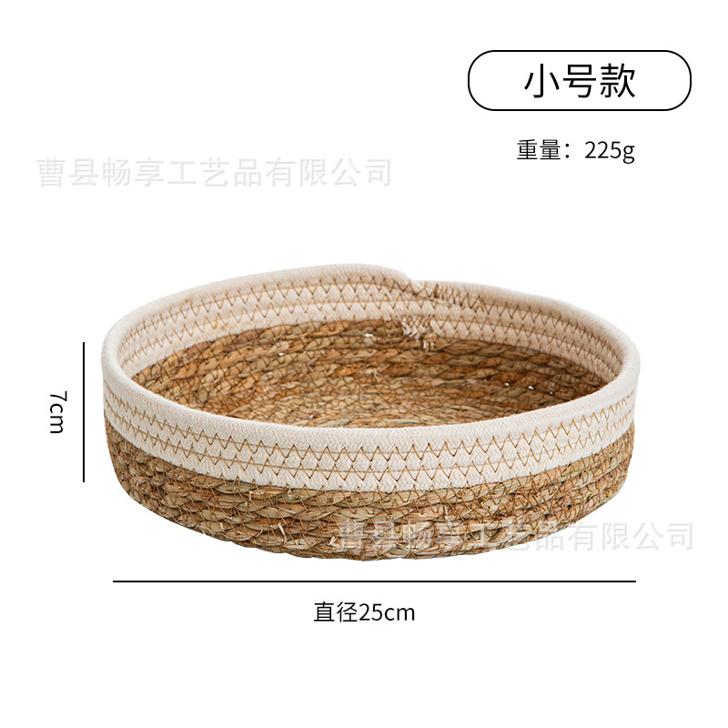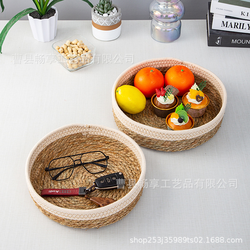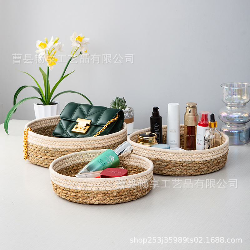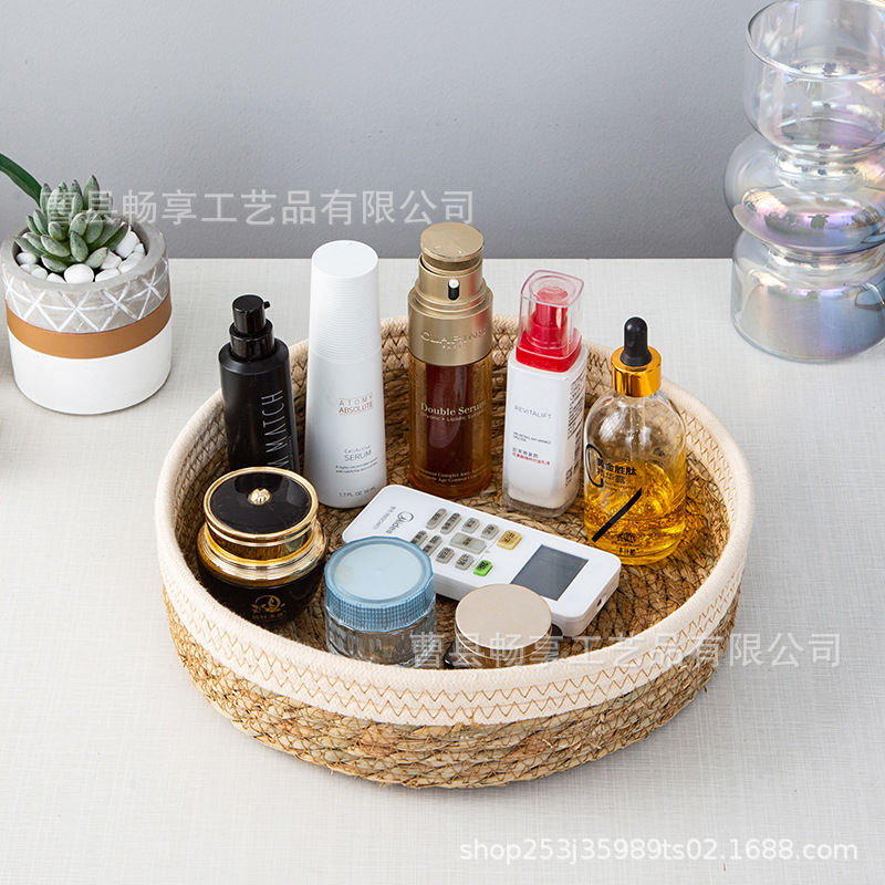 收纳筐编织篮子整理收纳草编化妆品收纳桌上藤编篮圆形收纳盒零食