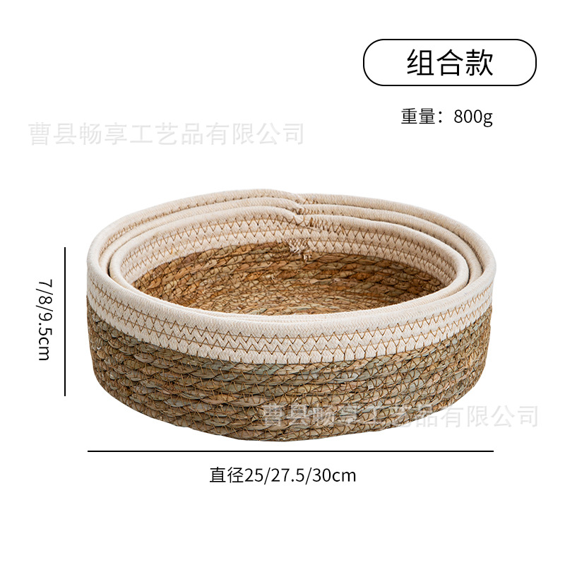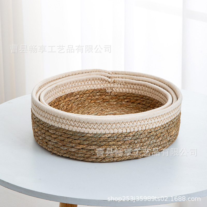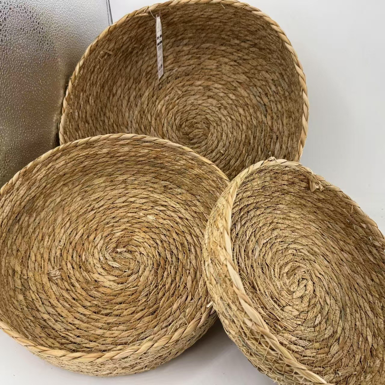 丸い海草編みバスケット3点セット、卓上フルーツ・スナック収納バスケット、収納かご、モダンでシンプルなスタイルの家庭用