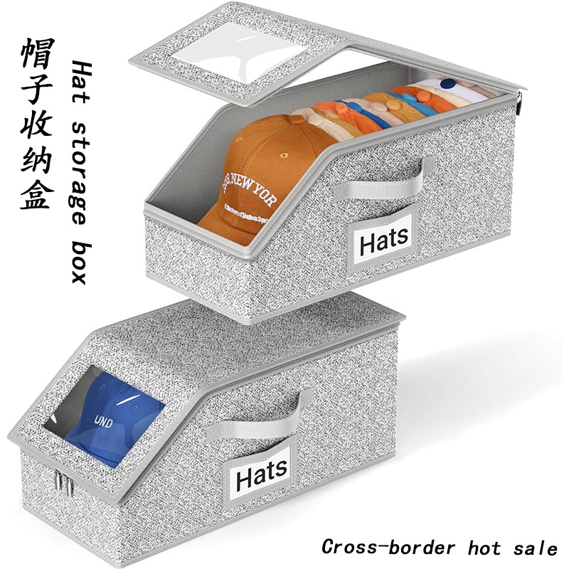 帽子收纳盒多功能大容量可折叠棒球帽储物盒带盖防尘盒亚马逊跨境