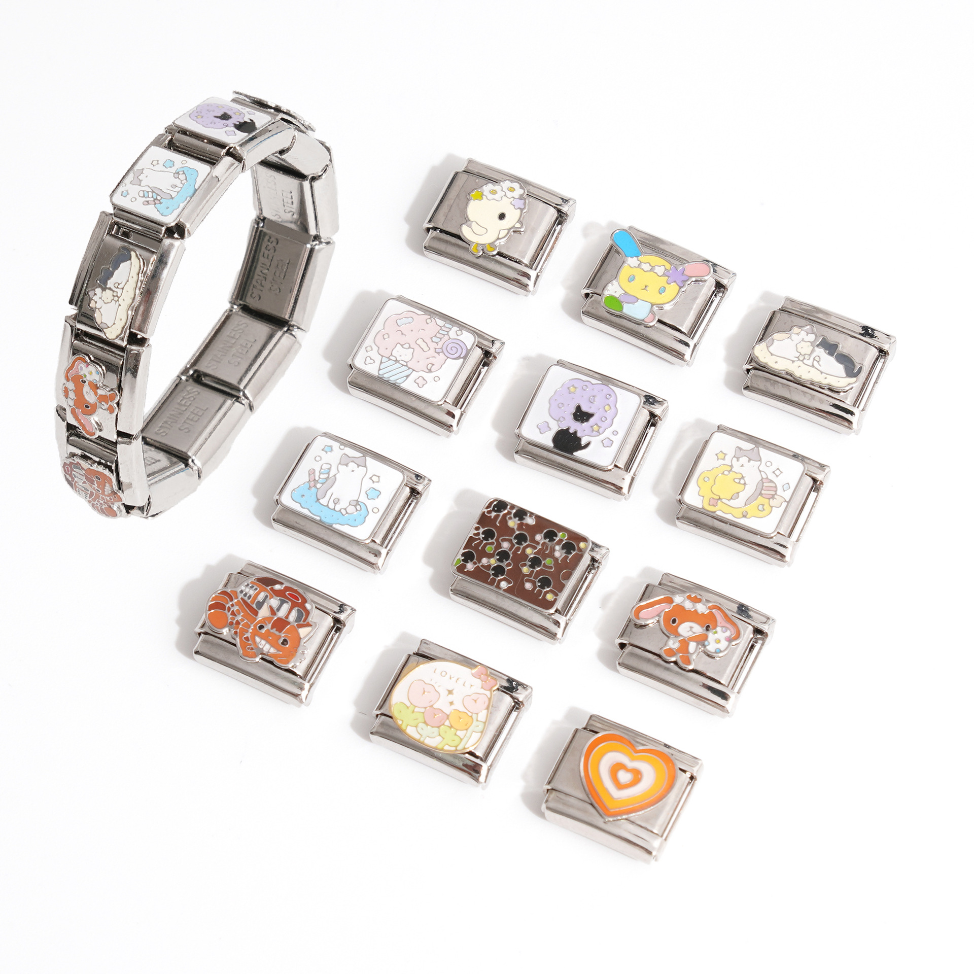 新しいクロスボーダーイタリアモジュールブレスレットアニメーションリンクシリーズステンレス鋼取り外し可能な DIY ブレスレットチェーン卸売