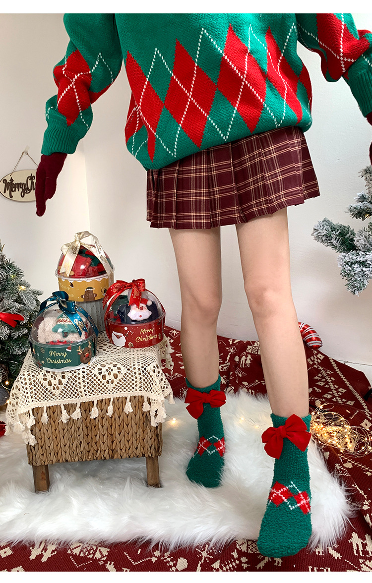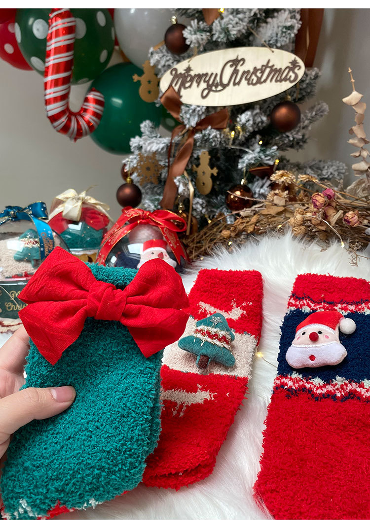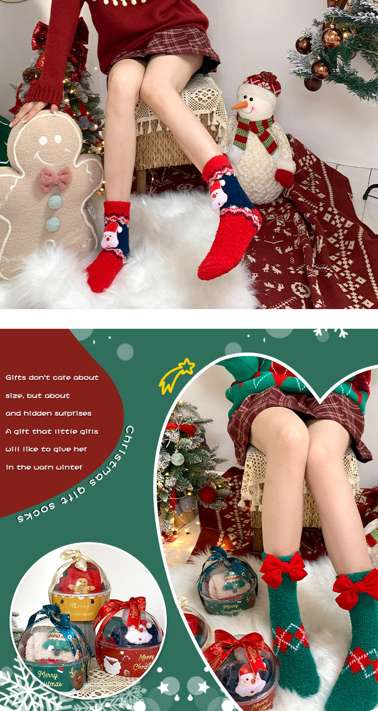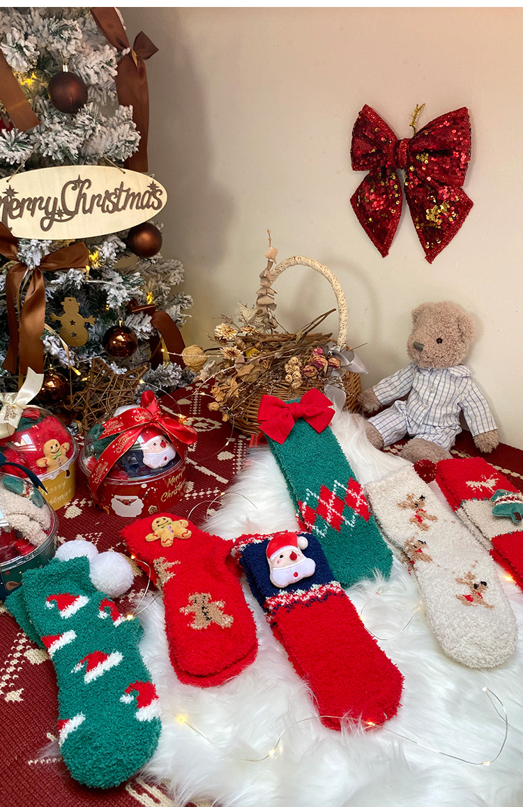 サンゴのベルベットのクリスマスの靴下2足の星のギフトボックスの漫画のサンタクロースのサンゴのベルベットの保温睡眠の家の靴下