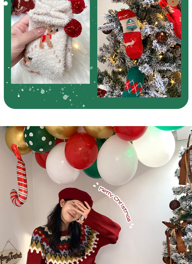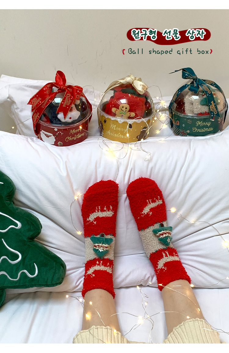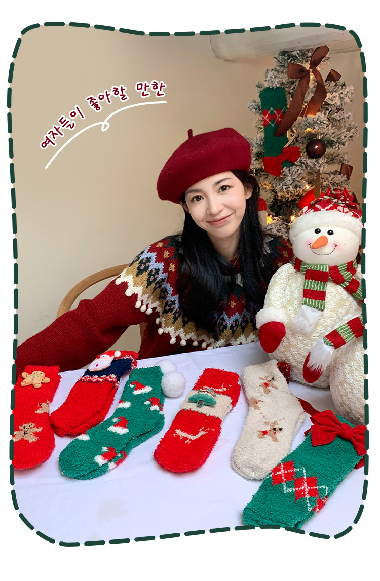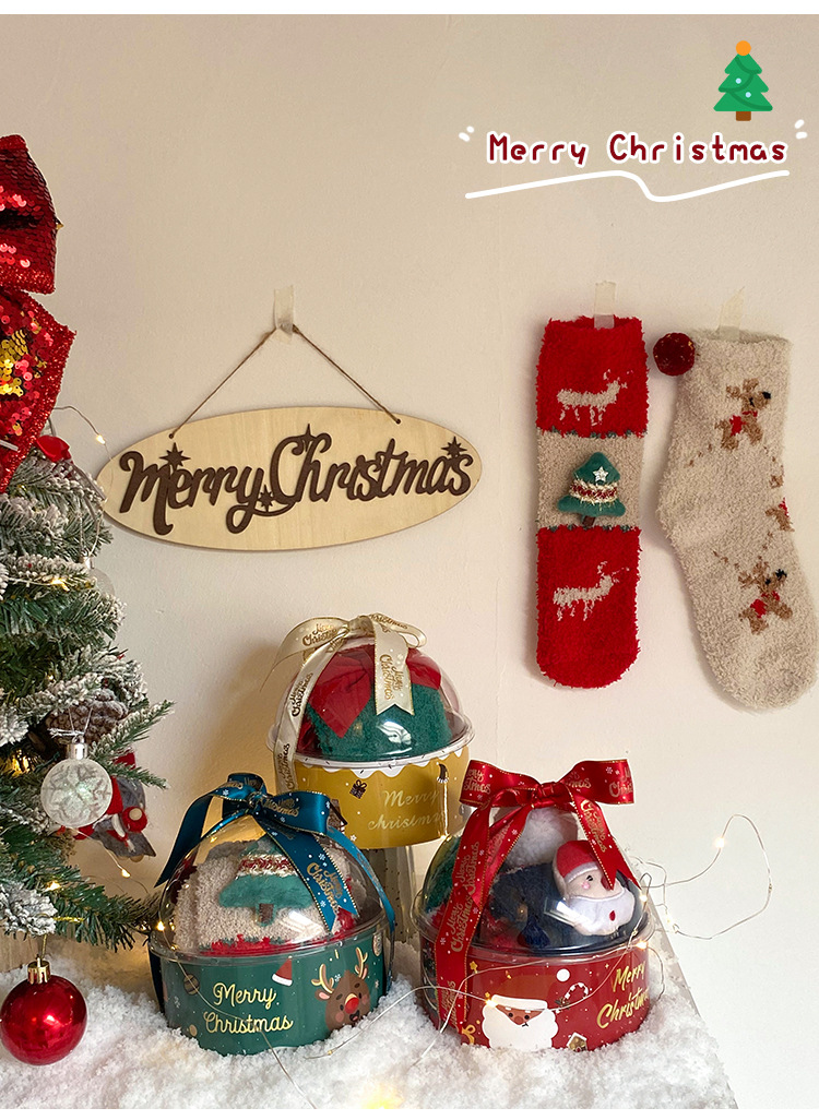 サンゴのベルベットのクリスマスの靴下2足の星のギフトボックスの漫画のサンタクロースのサンゴのベルベットの保温睡眠の家の靴下