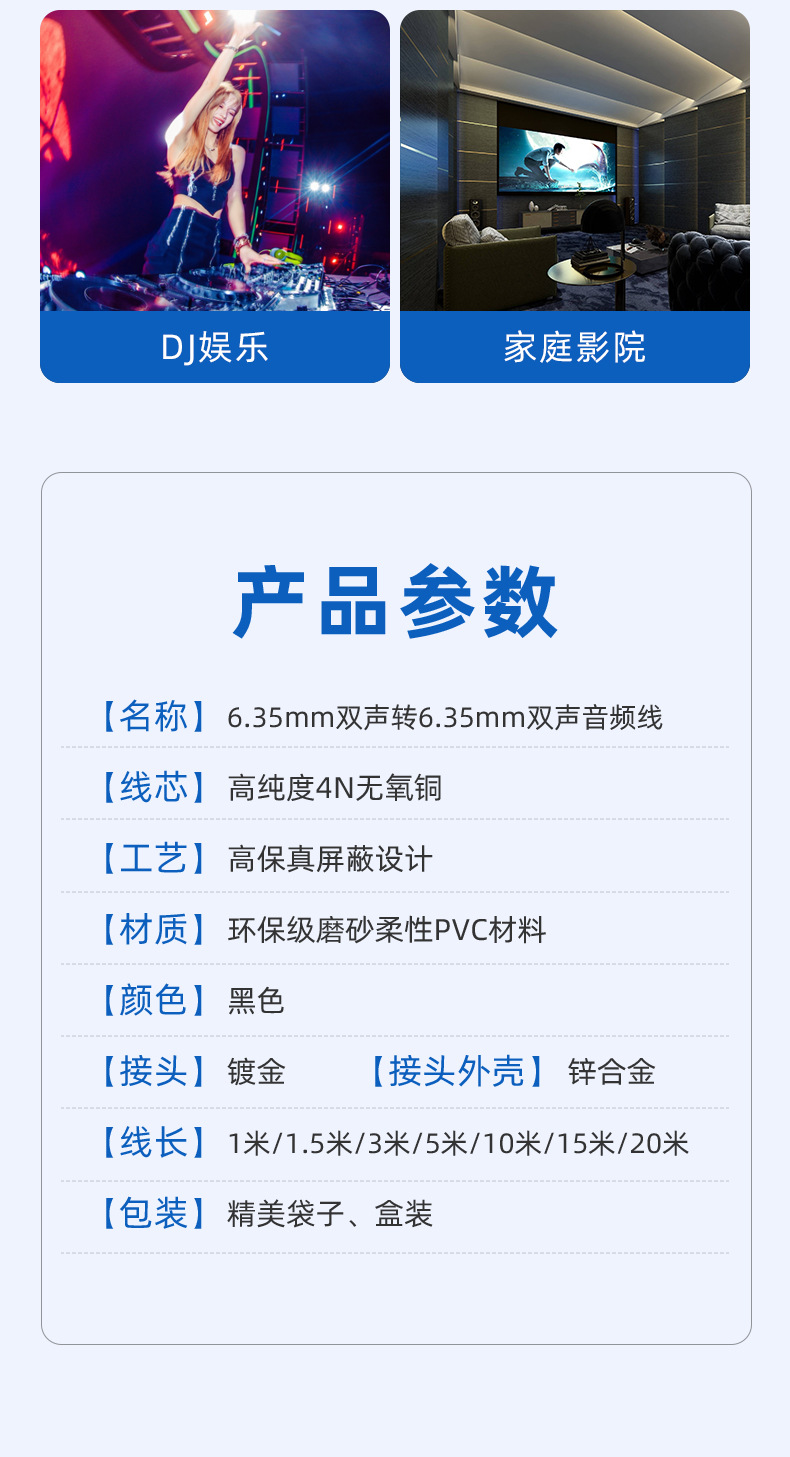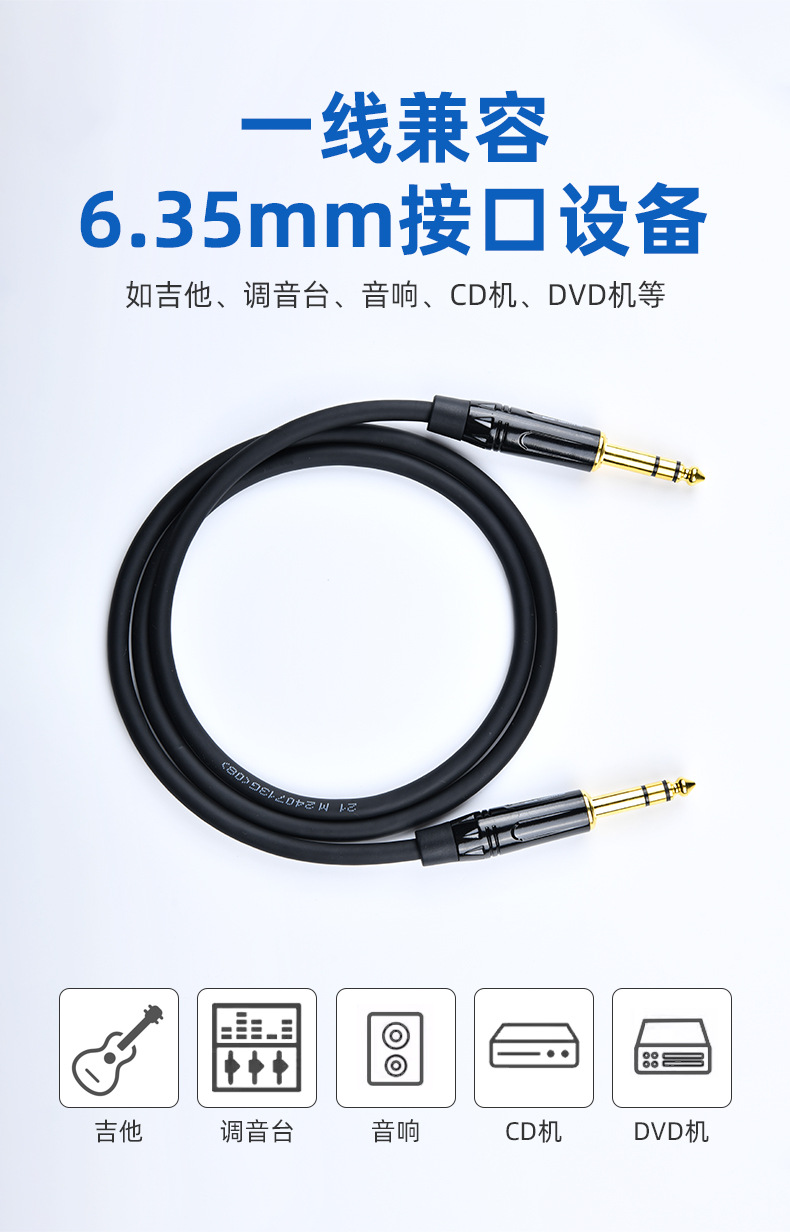 工場直売6.35mmダブルチャンネル回転6.35公オーディオ金メッキ接続ケーブルAUX合成器DCトリガ線