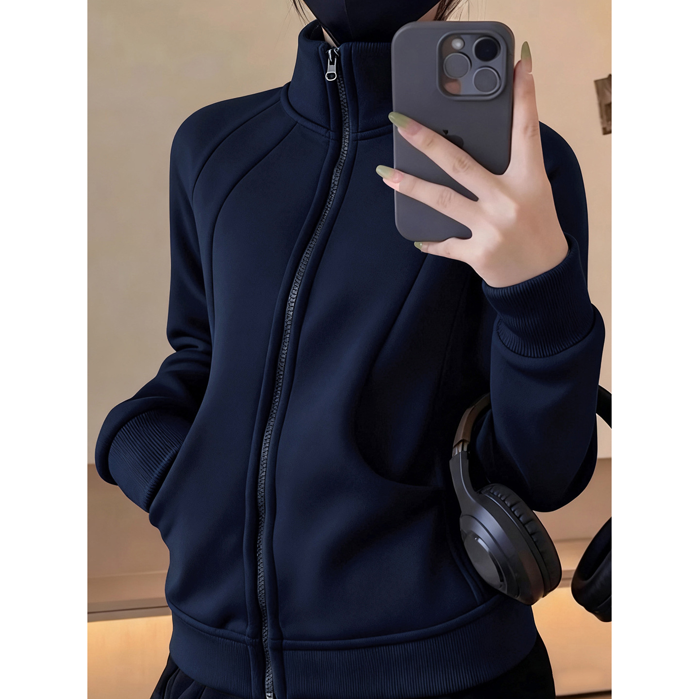 立领摇粒绒内搭修身卫衣秋冬外套早秋季德绒冲锋衣内胆女保暖上衣