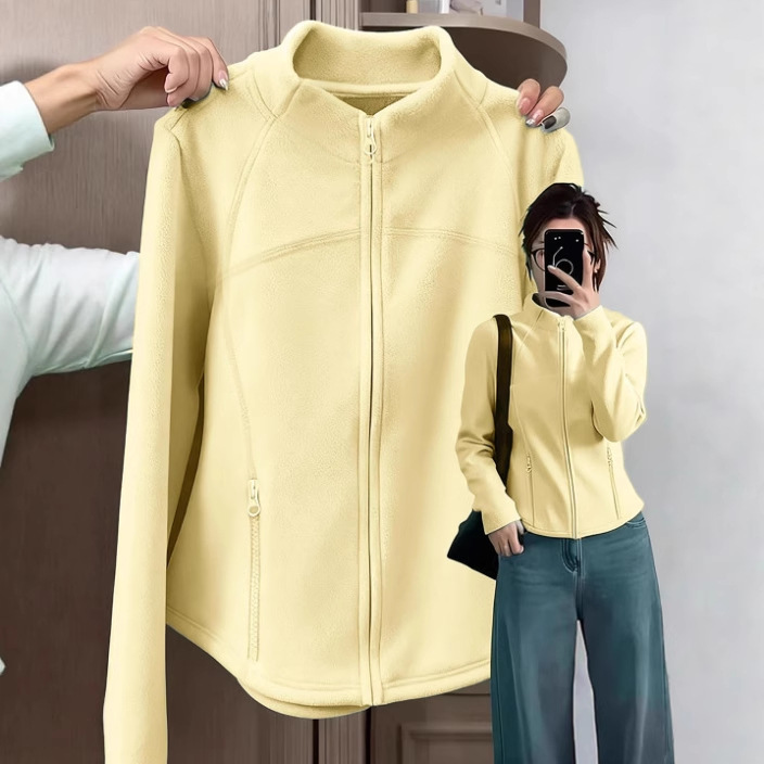 スタンドカラーポーラーフリース裏地付きベルベットスウェットシャツ、女性用秋用コート、女性用スリムフィットジャケット、厚手のカーディガン付きインナーウェア
