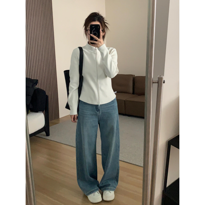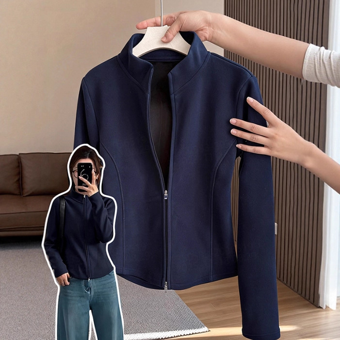 レディース スウェットシャツ スタンドカラー ジップアップ カーディガン スリムフィット 裏起毛 ジャケット インナー フリース 厚手 ベースレイヤー 多用途