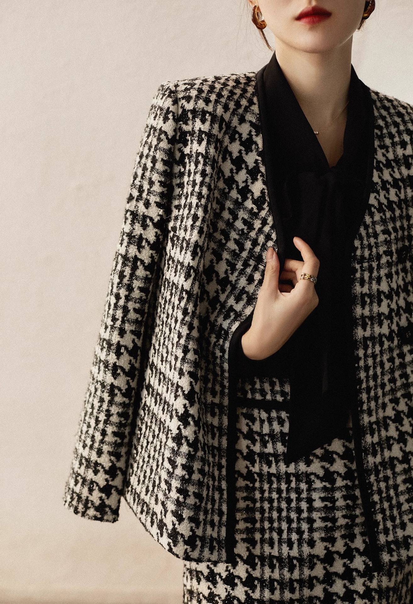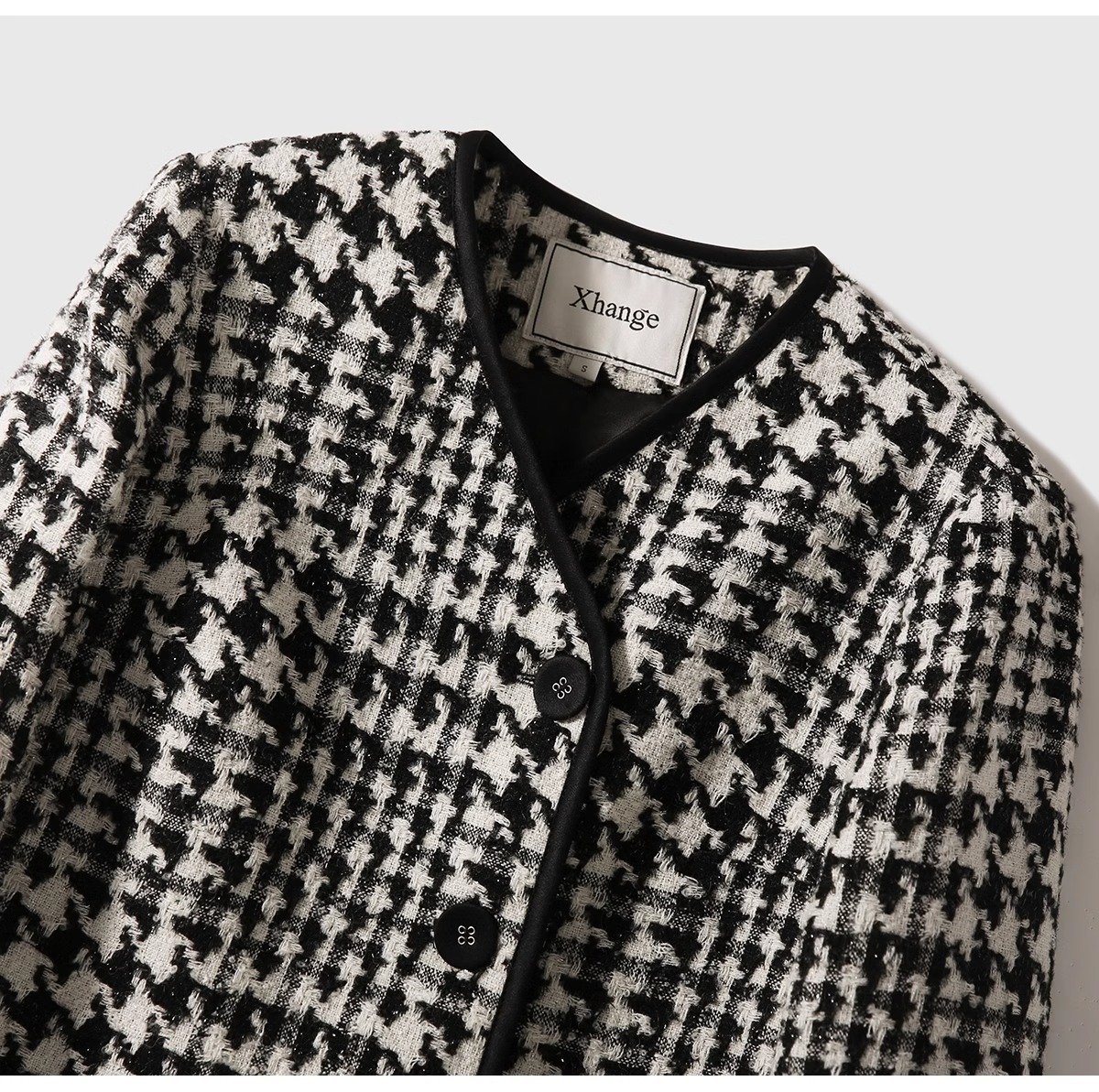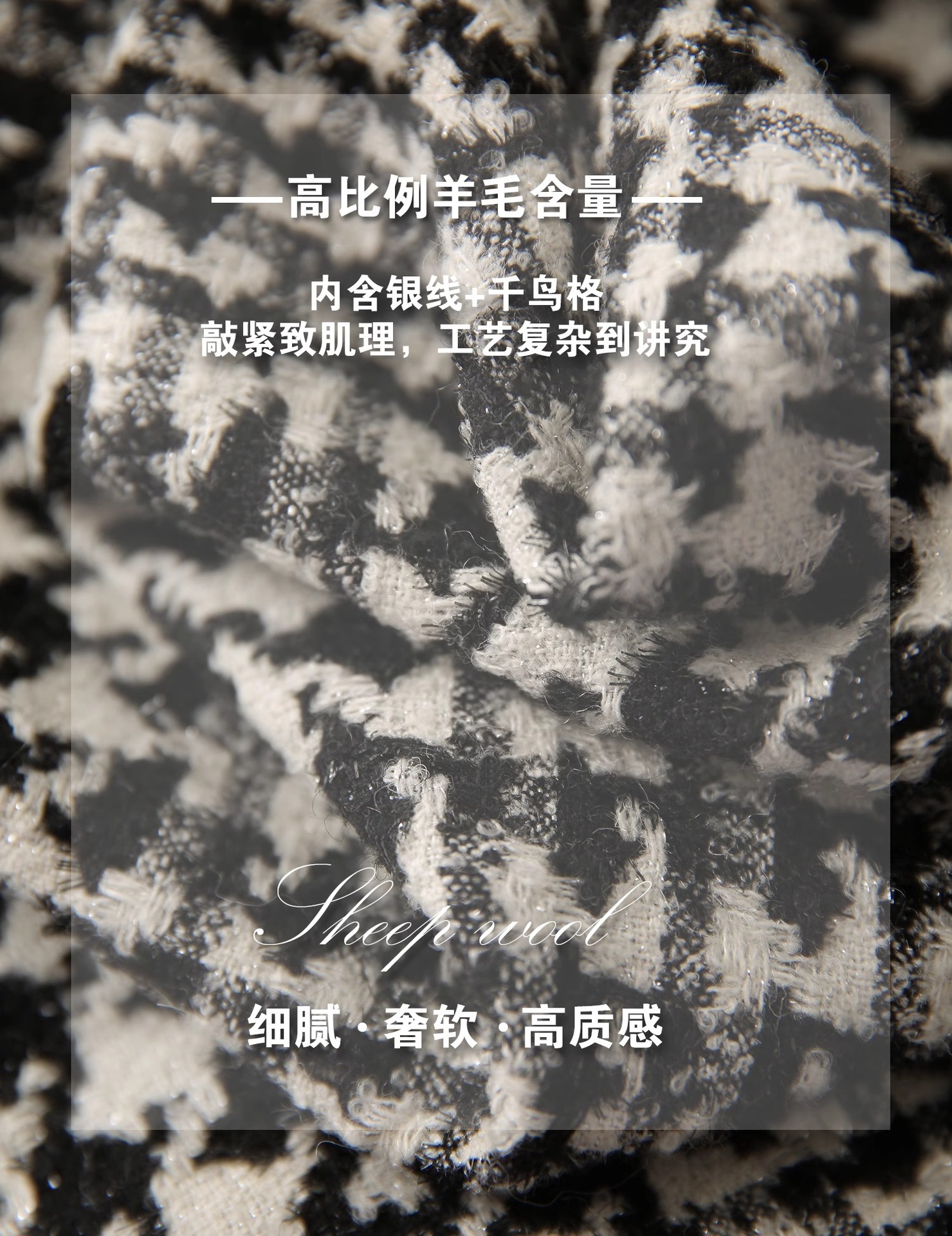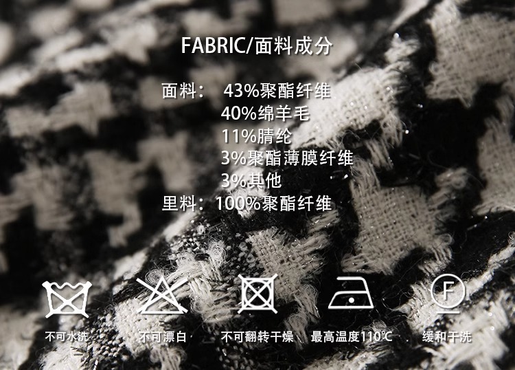 设计感秋冬香凋女神无压力系列匠心花呢千鸟格绵羊毛小香风外套女
