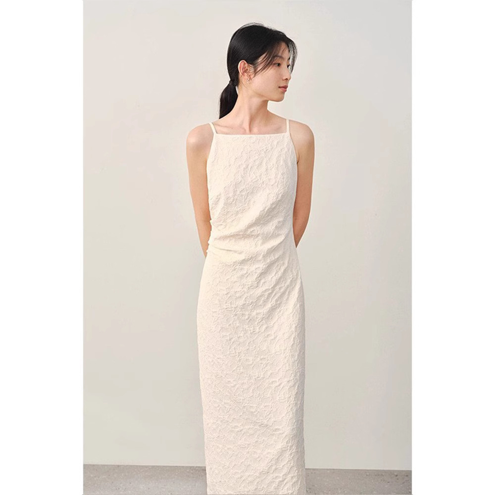 フレンチサテンノースリーブ登録ドレス2025夏新作ラウンドネックウエストハイエンド婚約ドレス
