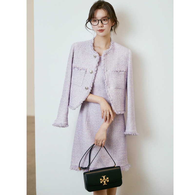 千金风粗花呢拉毛紫色小香风外套女2025秋冬高品质贵气小西装上衣
