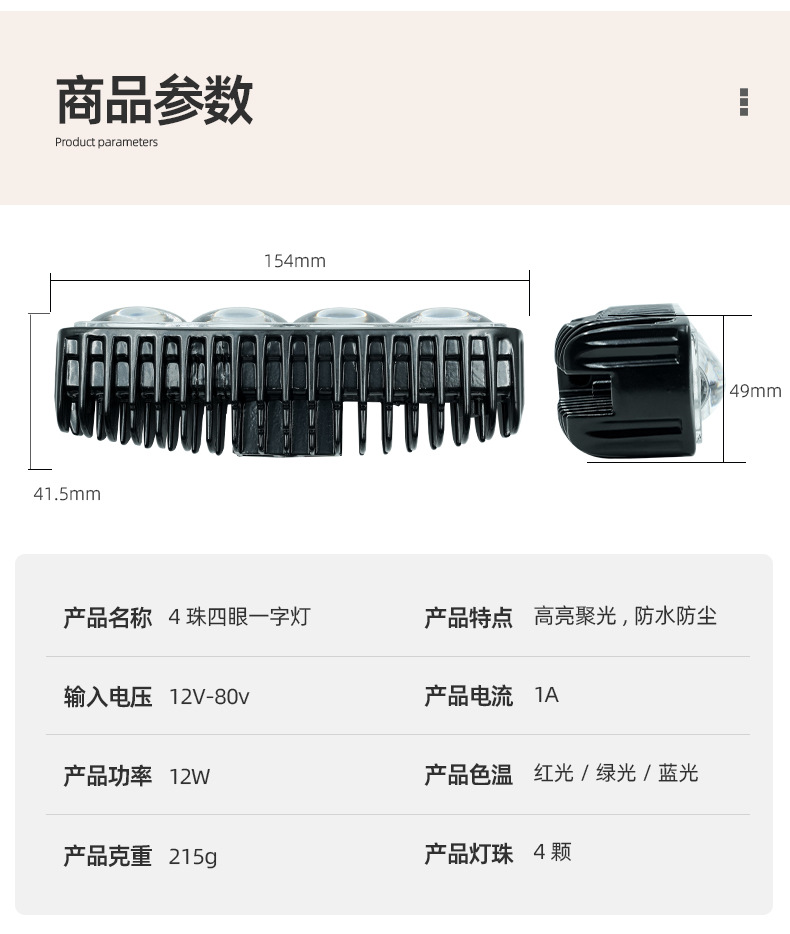 クロスボーダー新型オートバイ電気自動車スポットライト自動車オフロード車改造外付け作業灯防塵防水ライト