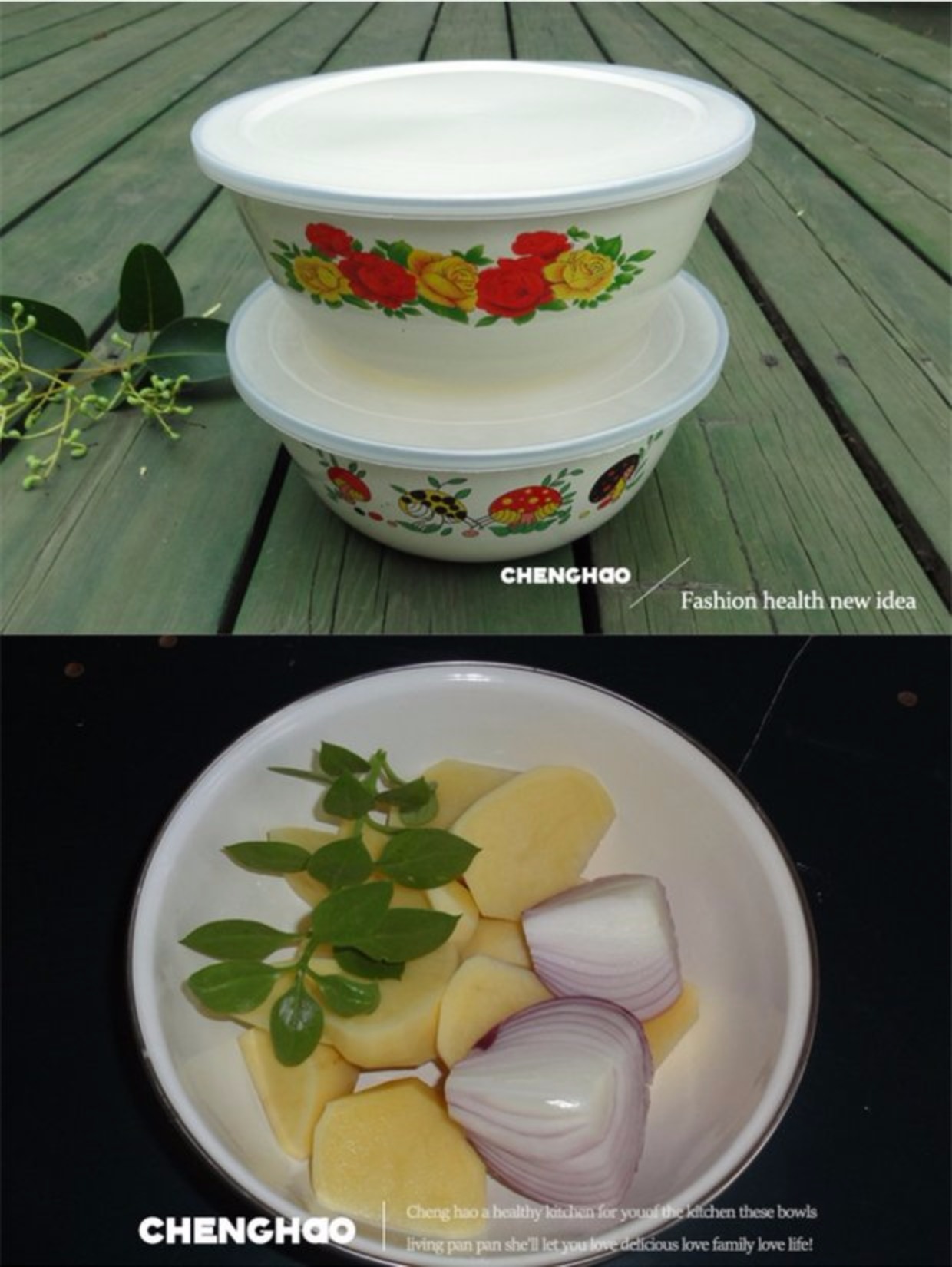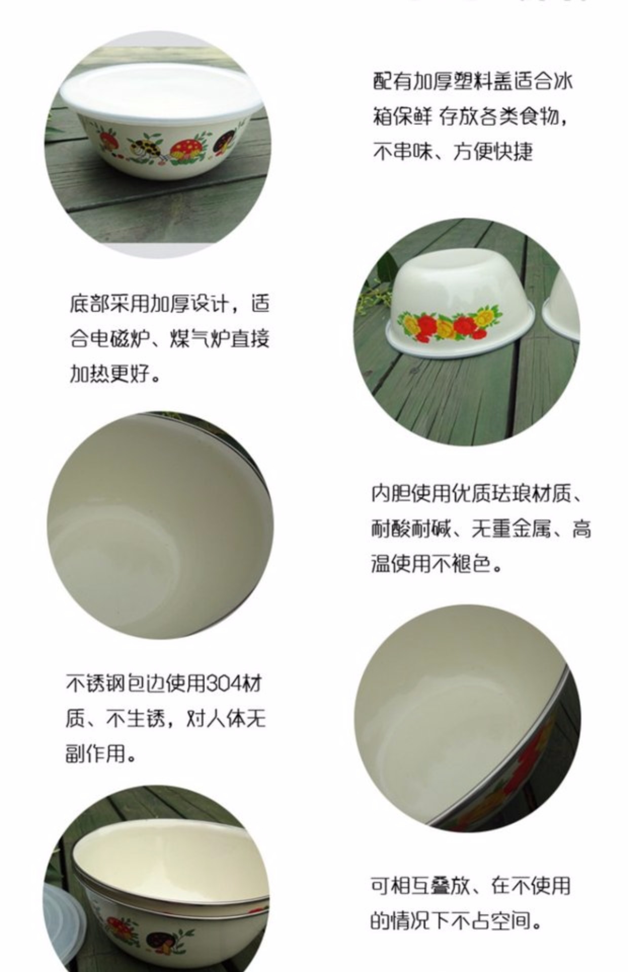 卸売りのエナメルの新鮮な碗は蓋を持って懐かしい旧式の鉄のエナメルのスープのたらいの大容量の泡の碗のエナメルの攪拌の碗を持ちます。