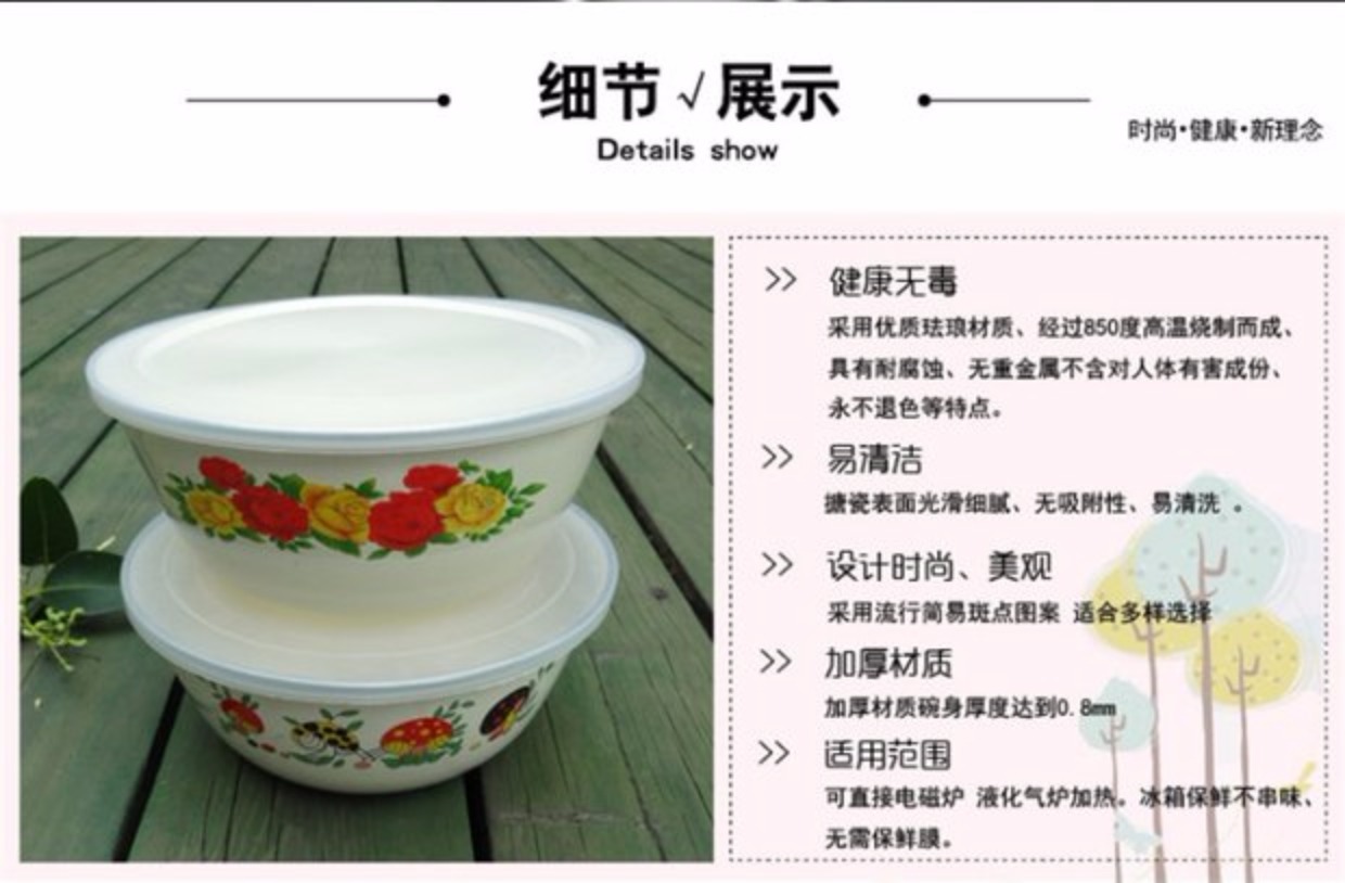 エナメル氷碗5点セットの鮮度保持円底碗印ロゴを厚くして、鮮度保持碗を密封します。