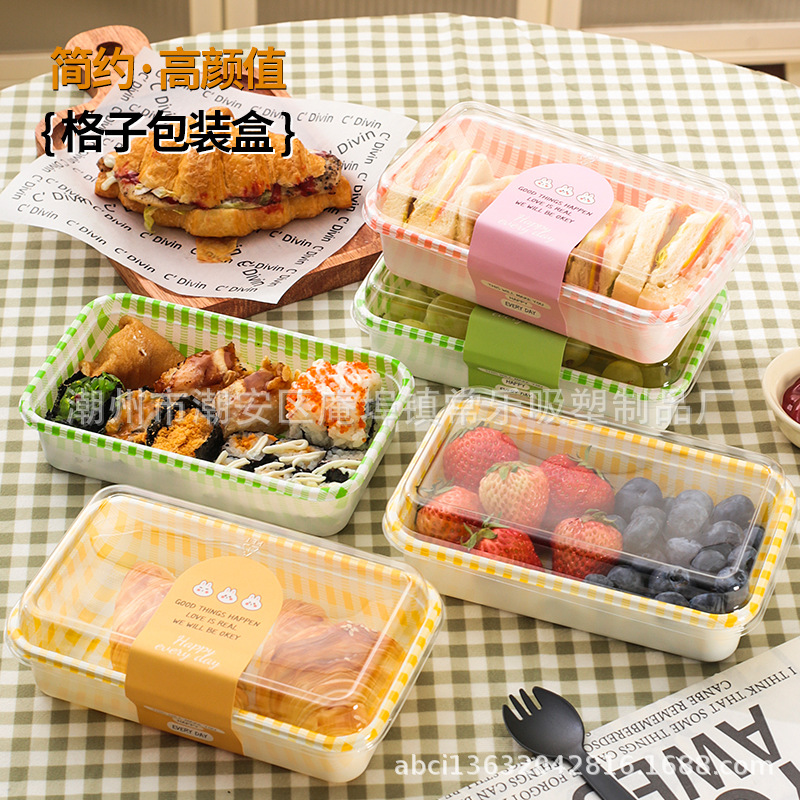 长方形格纹蛋糕盒蛋糕水果面包打包盒野餐便当盒透明塑料甜品盒