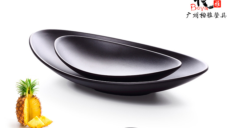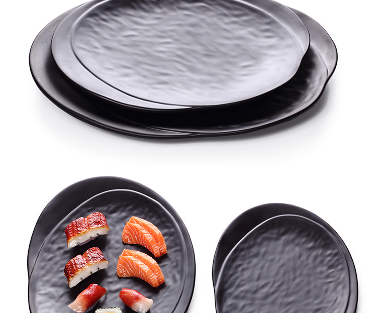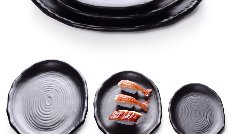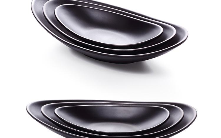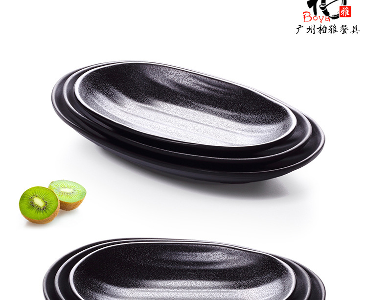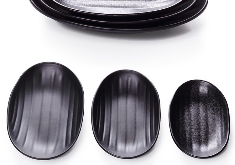 A5フロスト楕円円盤黒寿司皿クリエイティブ鍋焼肉皿凉菜皿日本式模造磁器魚皿食器
