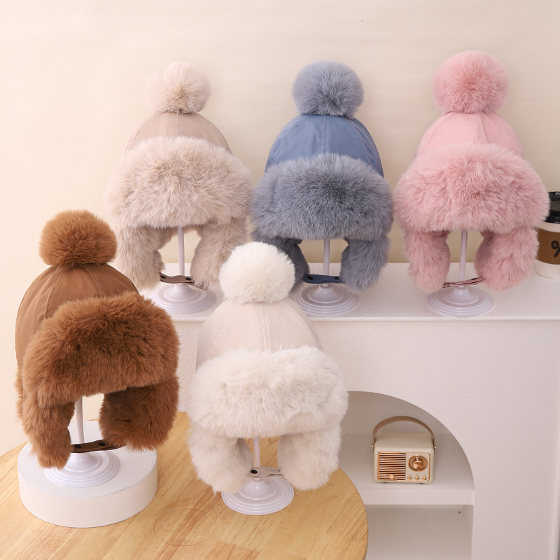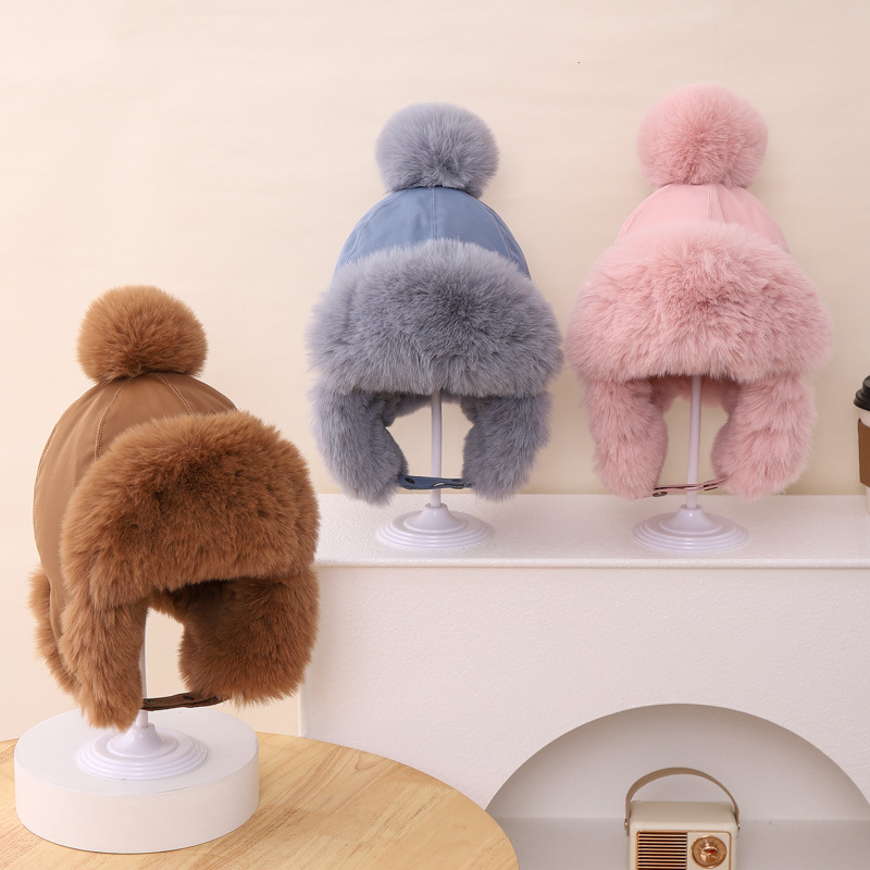 秋冬の厚手防寒のぬいぐるみの帽子の中の大きい子供の雷鋒の帽子の毛玉の耳の帽子の保温の東北のスキーの帽子