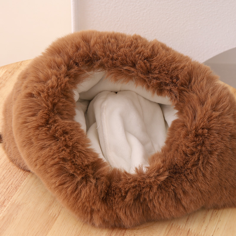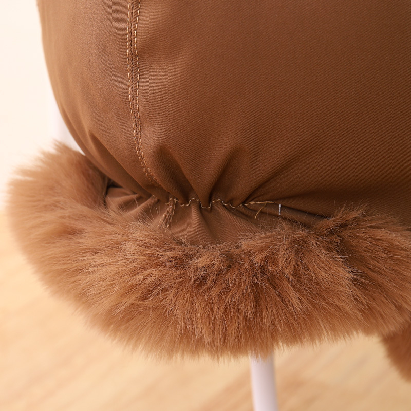 赤ちゃんの冬の毛はふわふわしていて、耳の雷の前線の帽子を厚くして防寒します。
