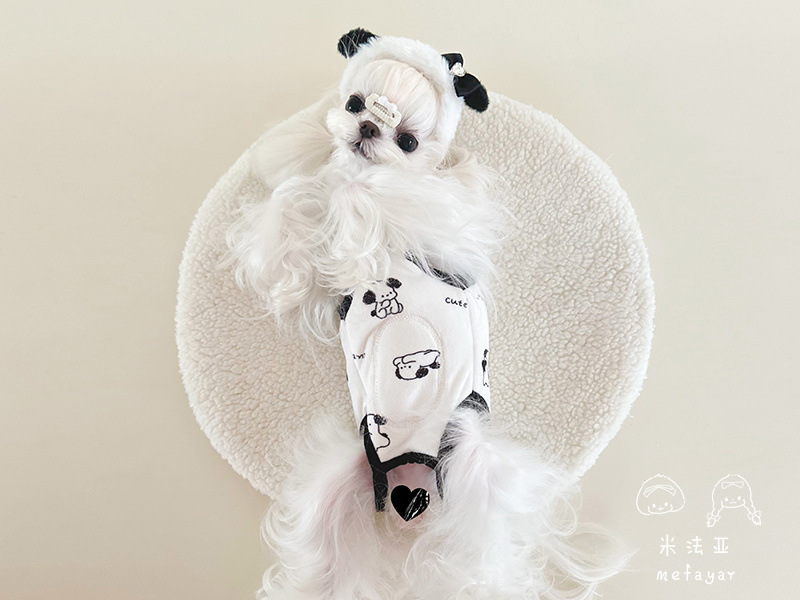 米法亚厂家直销宠物猫狗衣服纯棉花边苹果熊猫闪钻背心打底