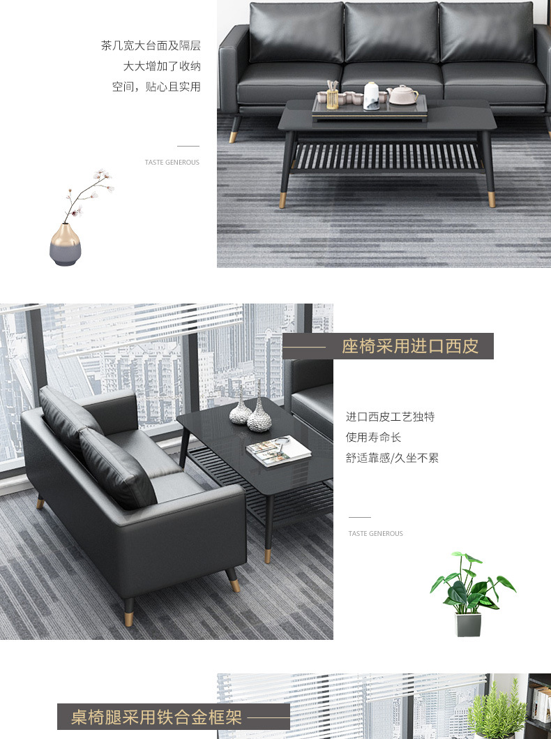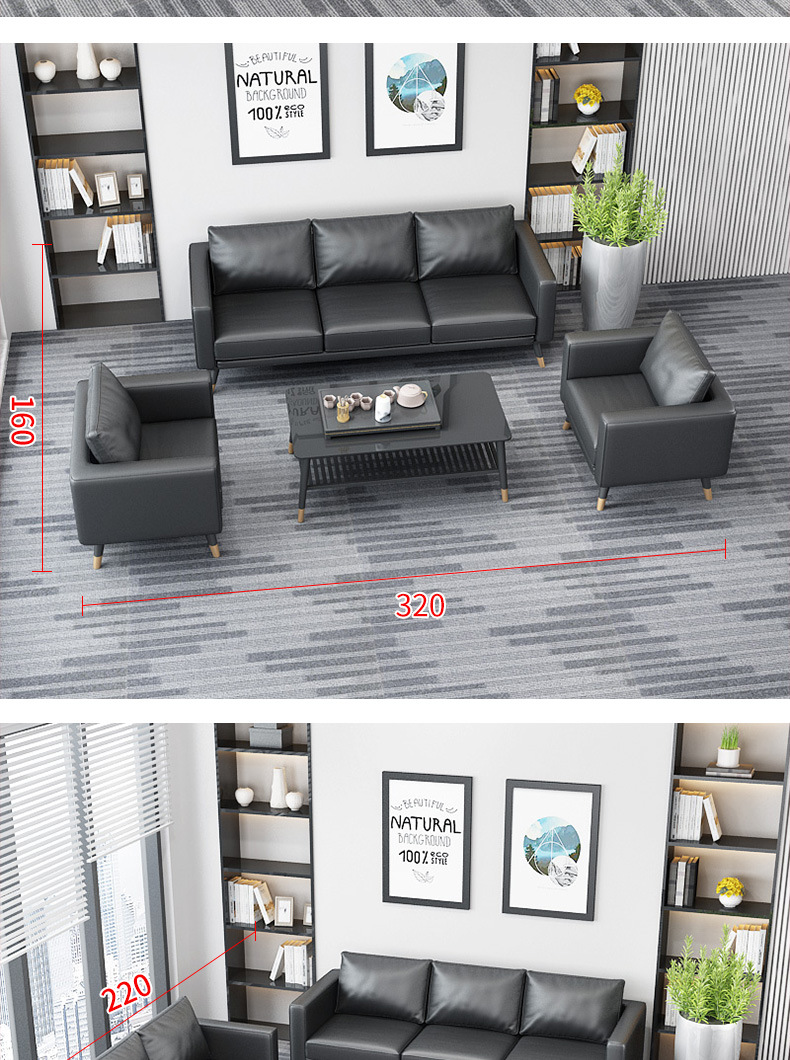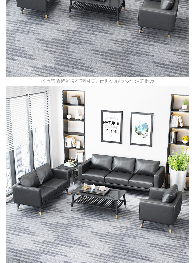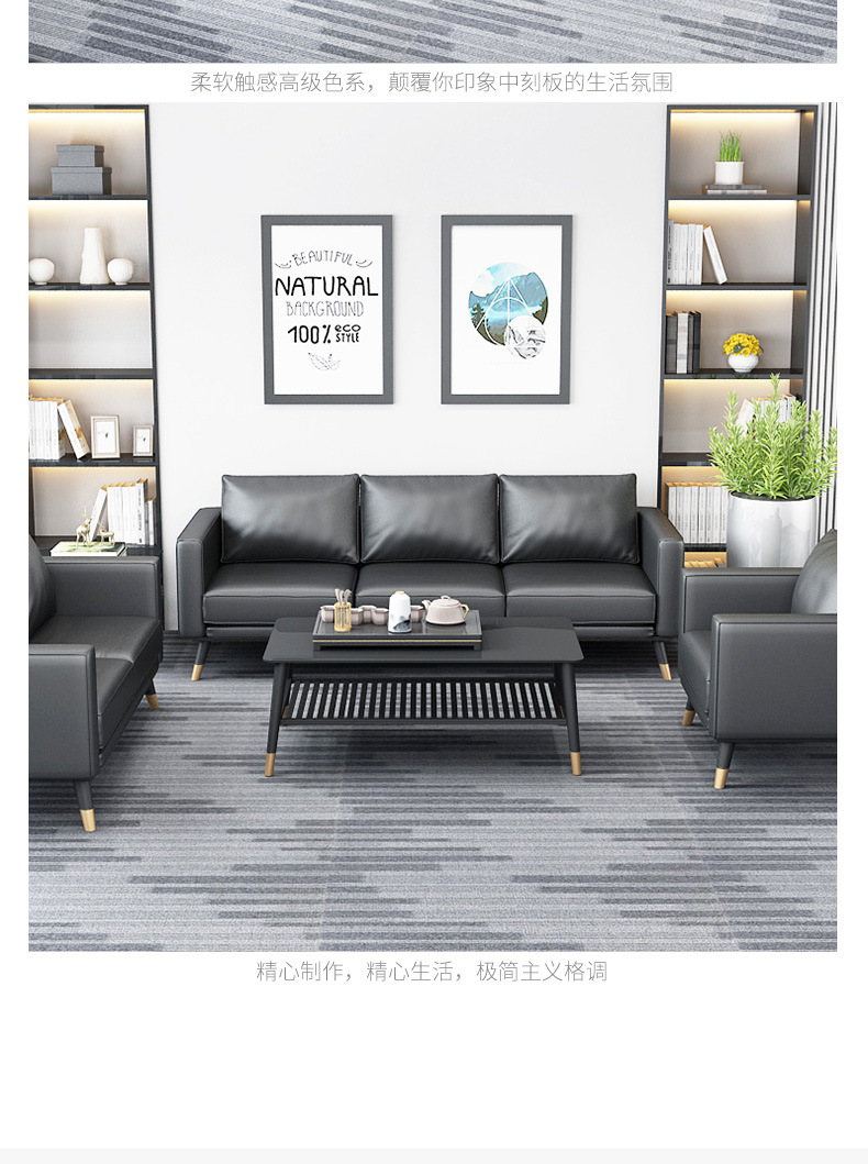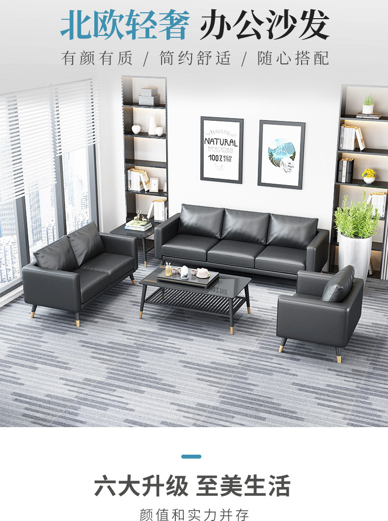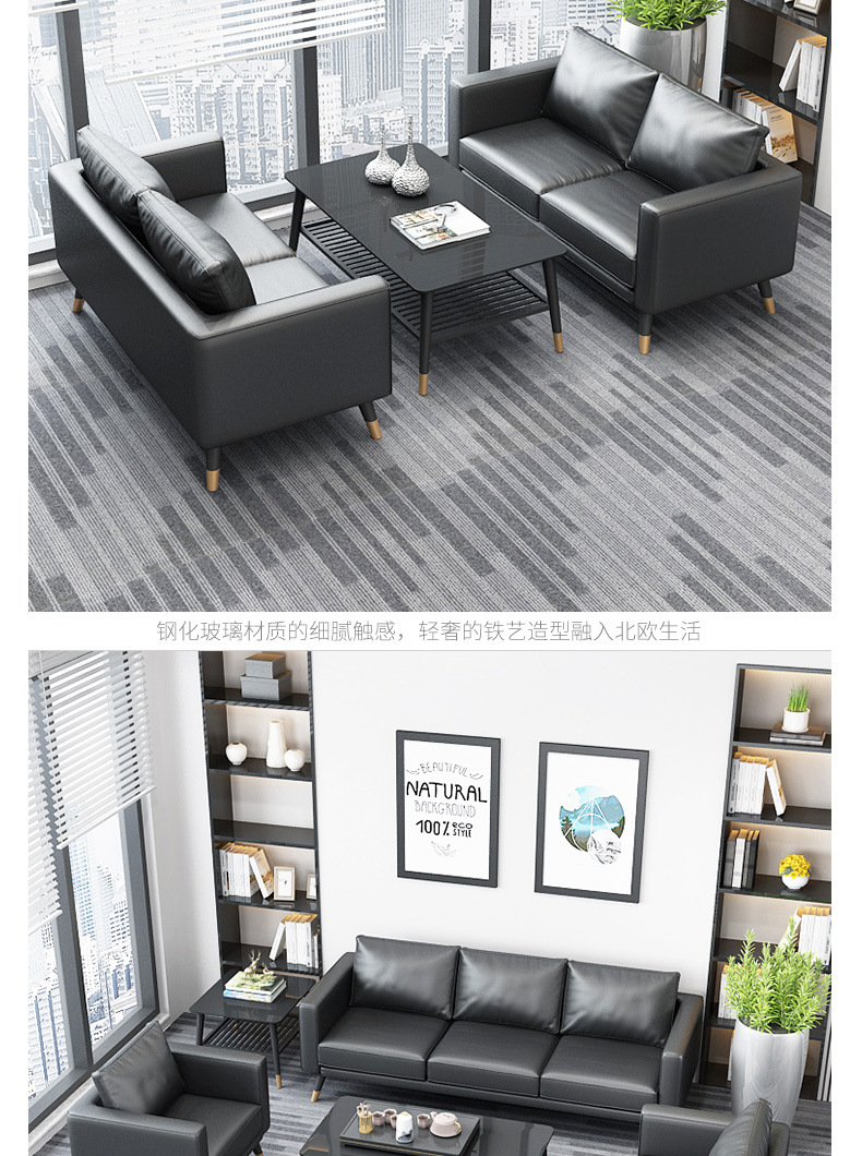 オフィスソファーティーセット三人位シンプル現代北欧ビジネス会客鉄芸オフィス接待
