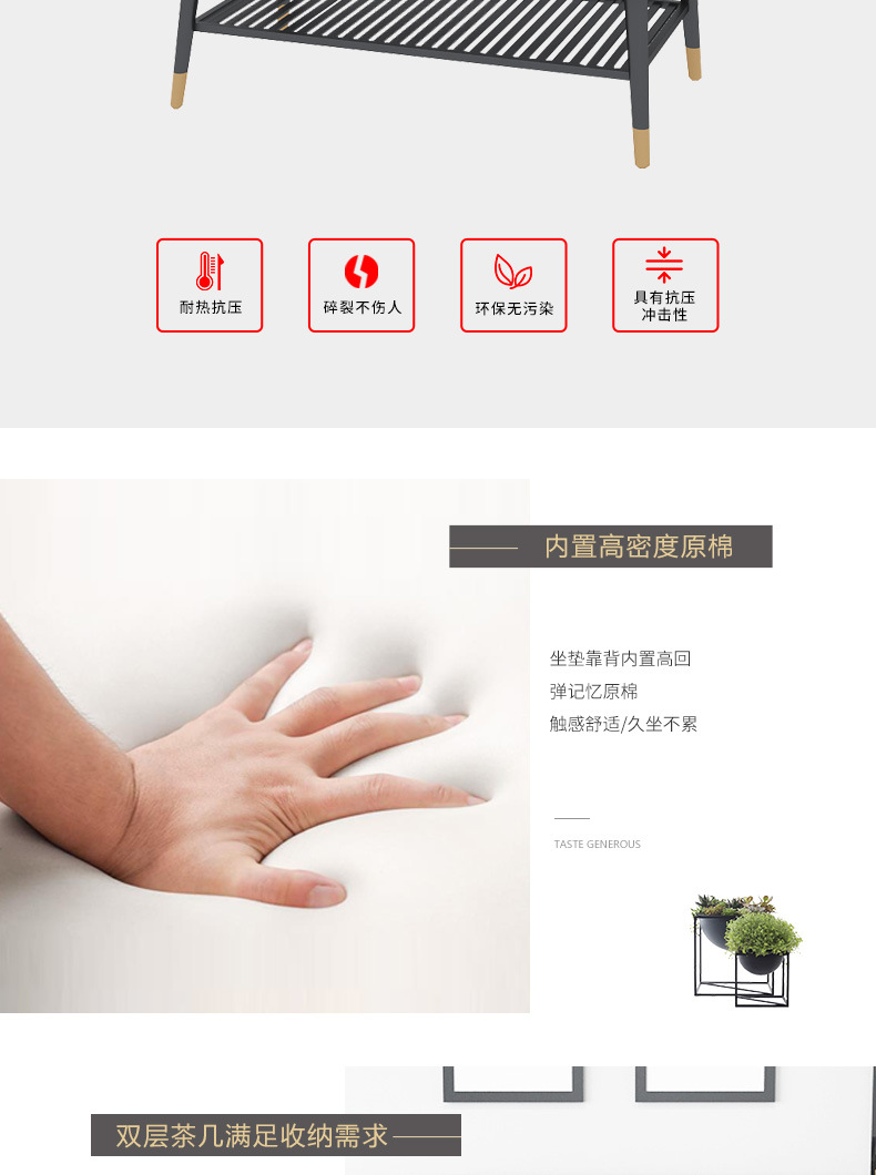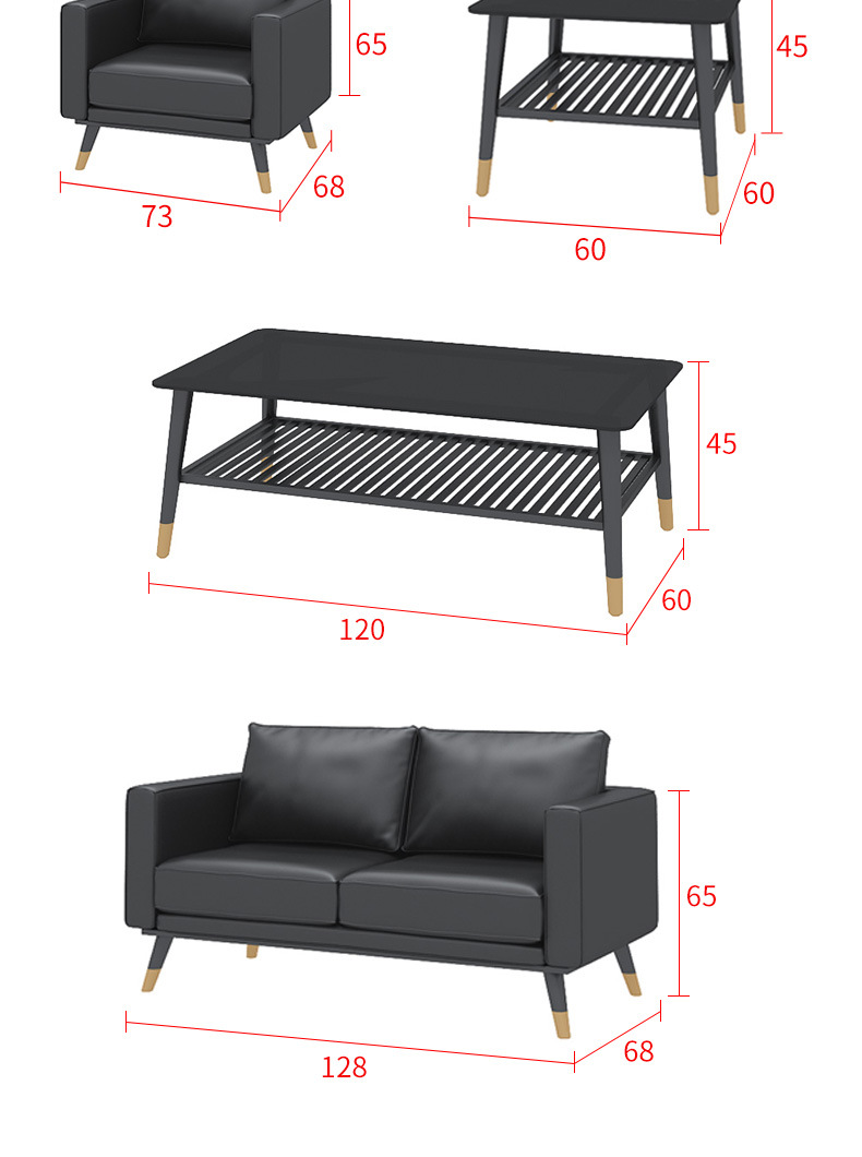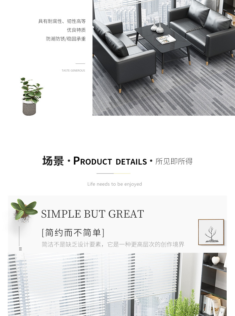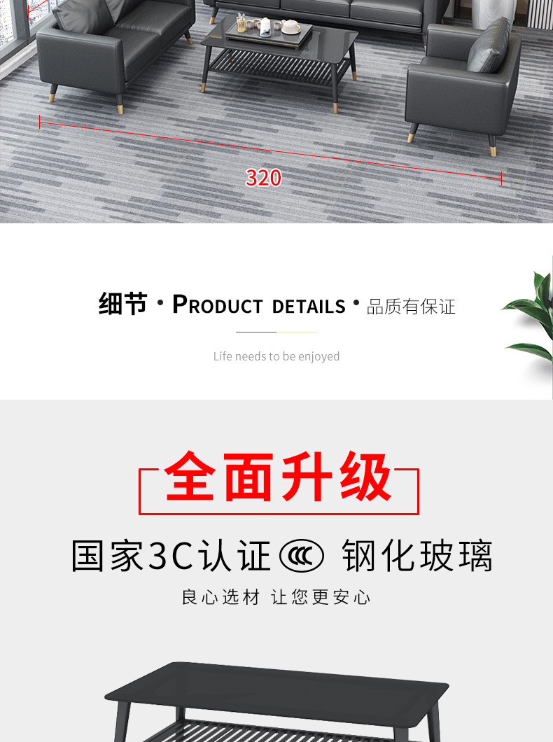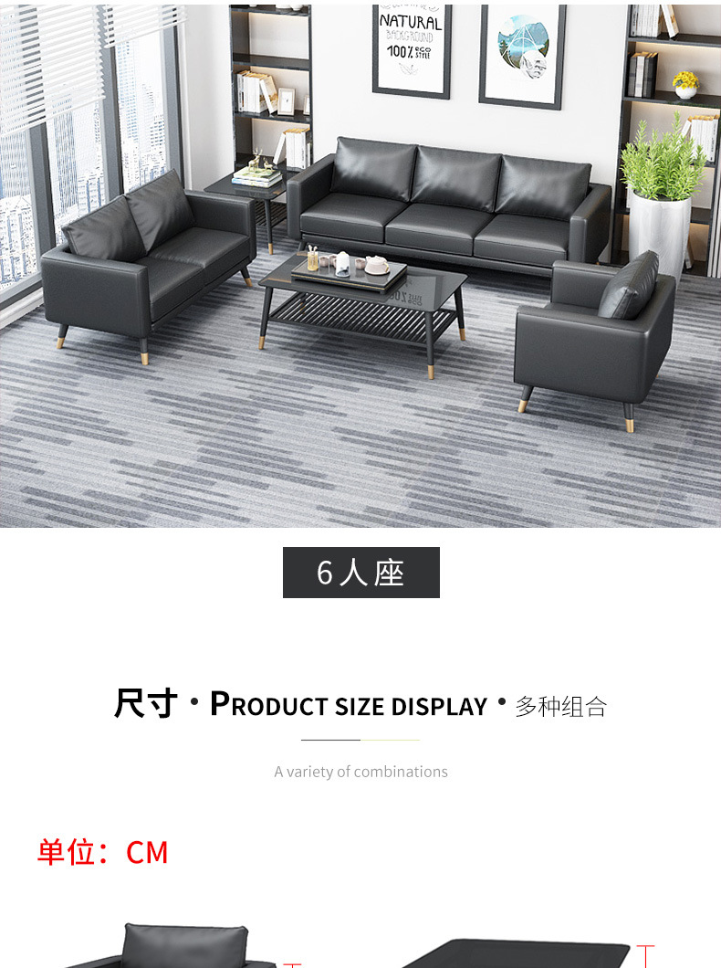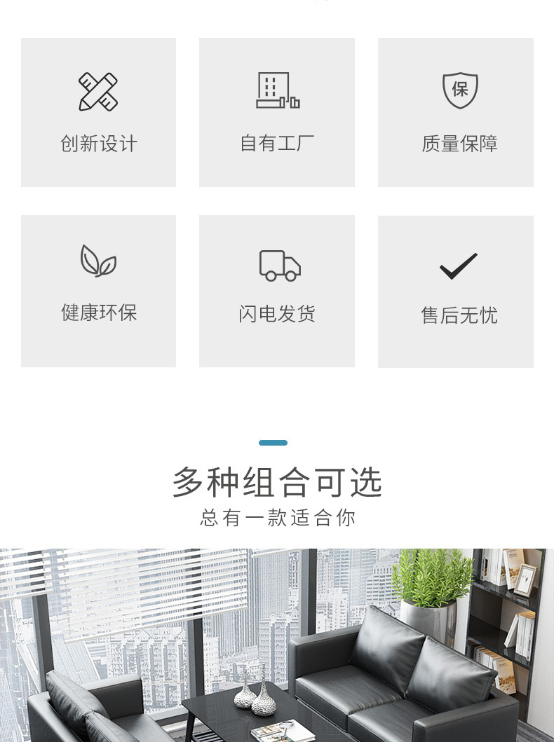 オフィスソファーティーセット三人位シンプル現代北欧ビジネス会客鉄芸オフィス接待