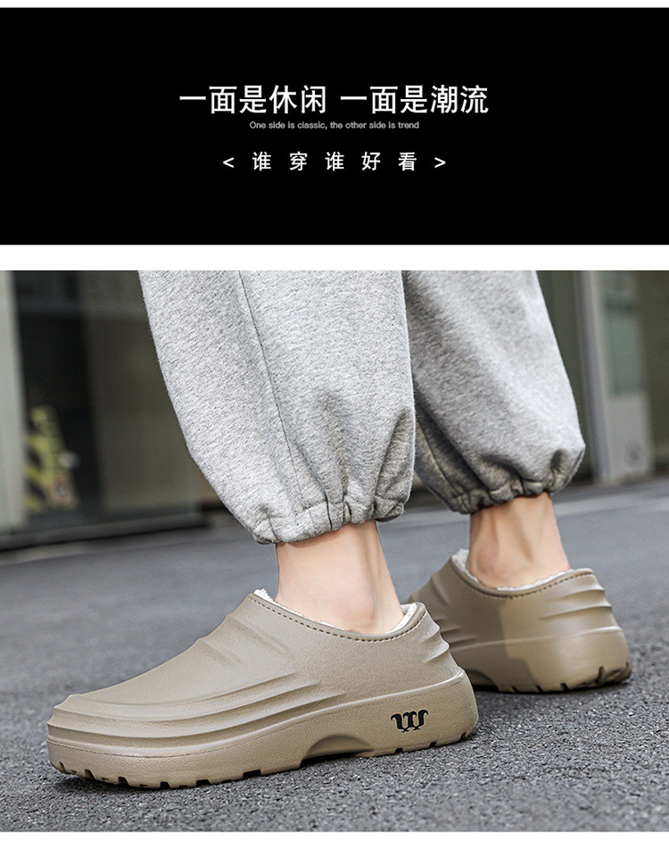 棉拖鞋男士秋冬季2025年新款防滑防水加绒保暖厨师鞋包头棉鞋男