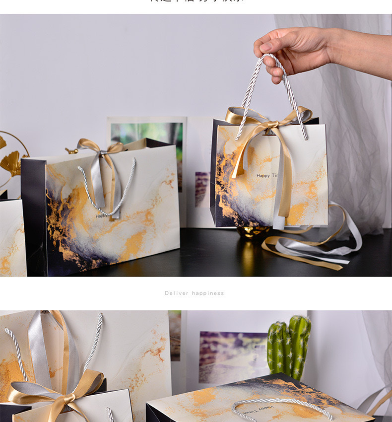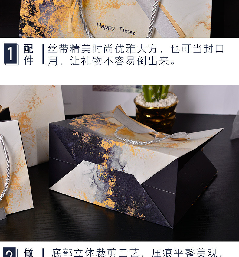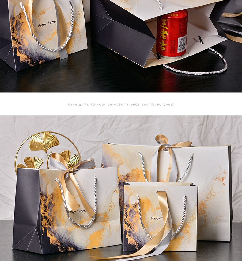 現物墨色大理石紋お土産紙袋insギフトバッグロゴ紙袋