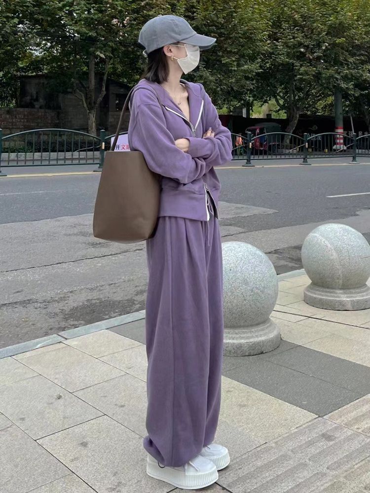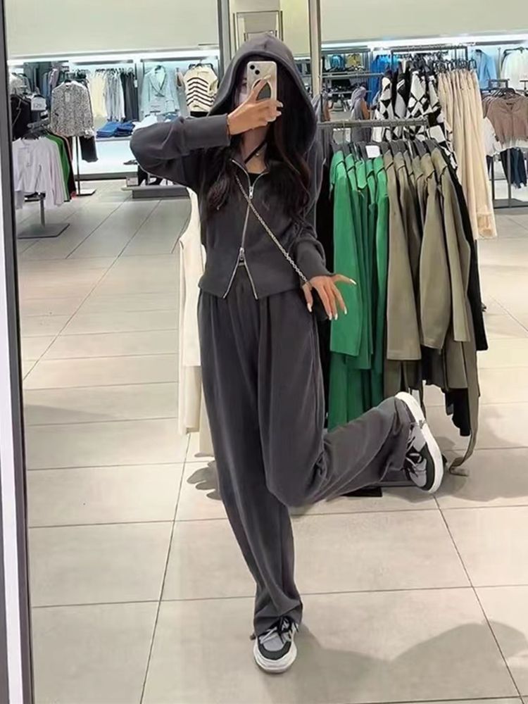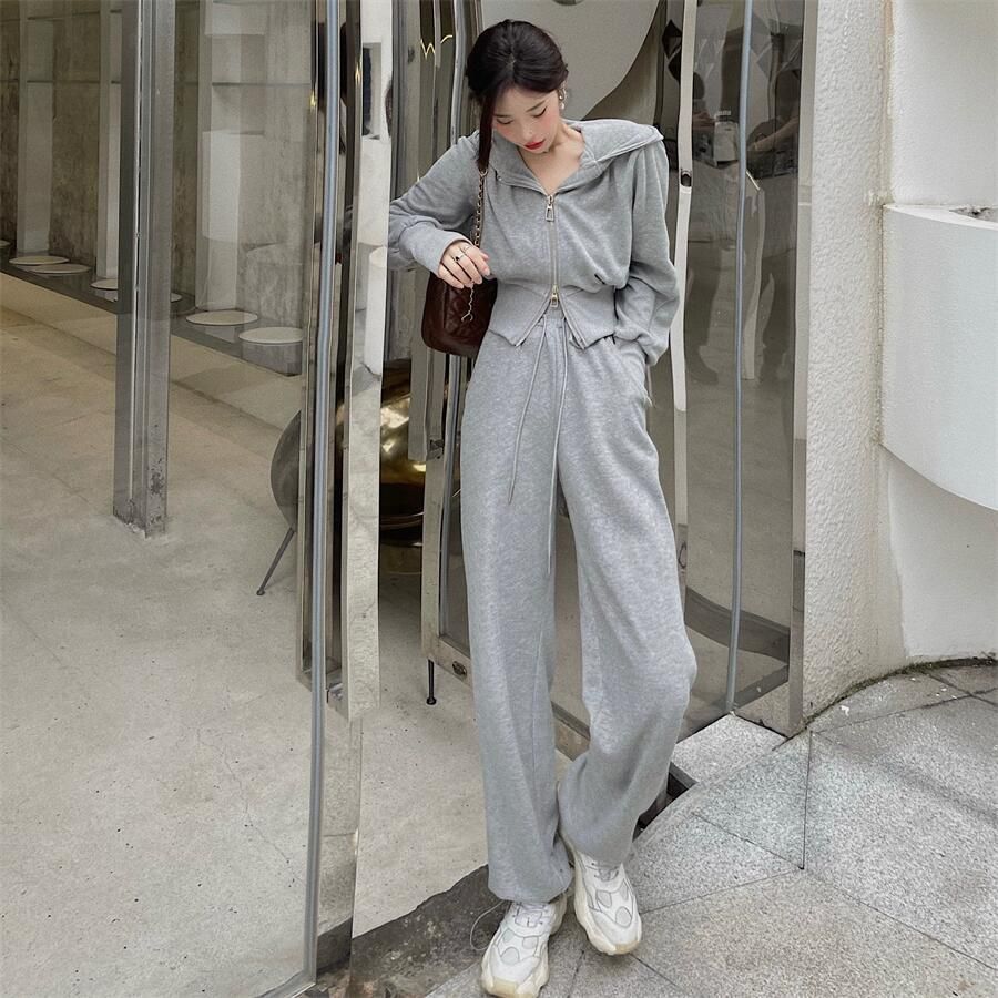 ヨーロッパのアメリカのカジュアルなスポーツウェアの外国貿易の女性のスーツの春と秋の学生のゆったりしたガードルのワイドパンツの2つのセットのファッション
