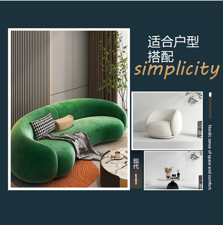 洋服屋美容院のアーチ型ソファーはリビングルームの現代シンプルな北欧の軽い豪華なオフィスの応接室の布芸の異形です。