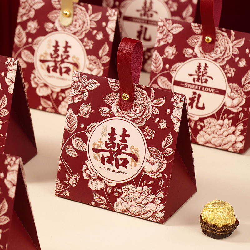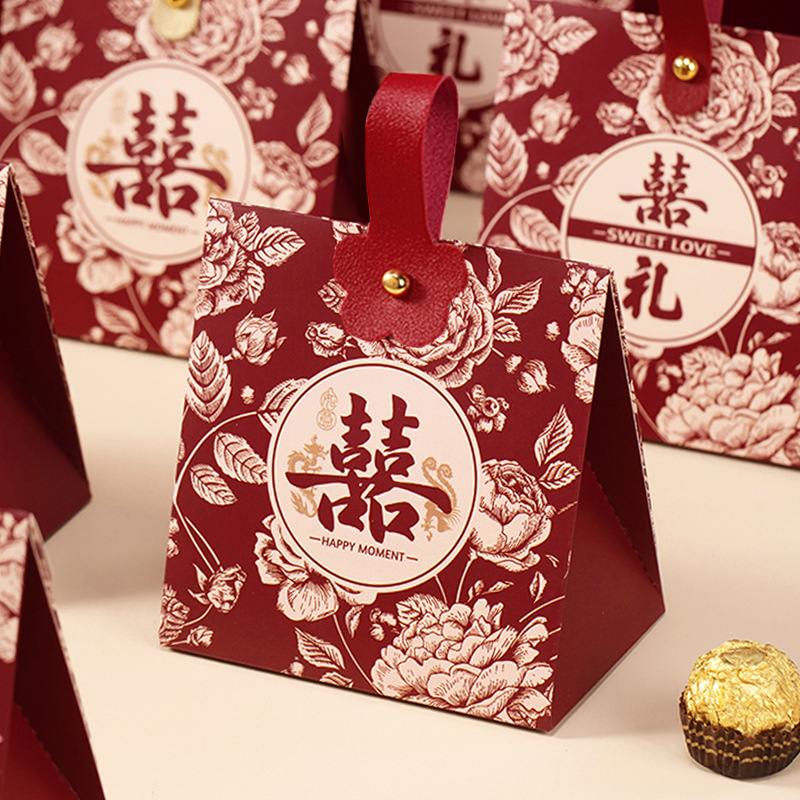 新型結婚喜糖箱高級感新中国式結婚式専用喜糖袋結婚式婚約お土産箱