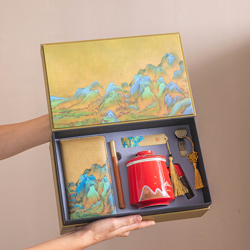 千里江山办公杯二三四五件套商务礼品套装中秋国庆活动伴手礼纪念