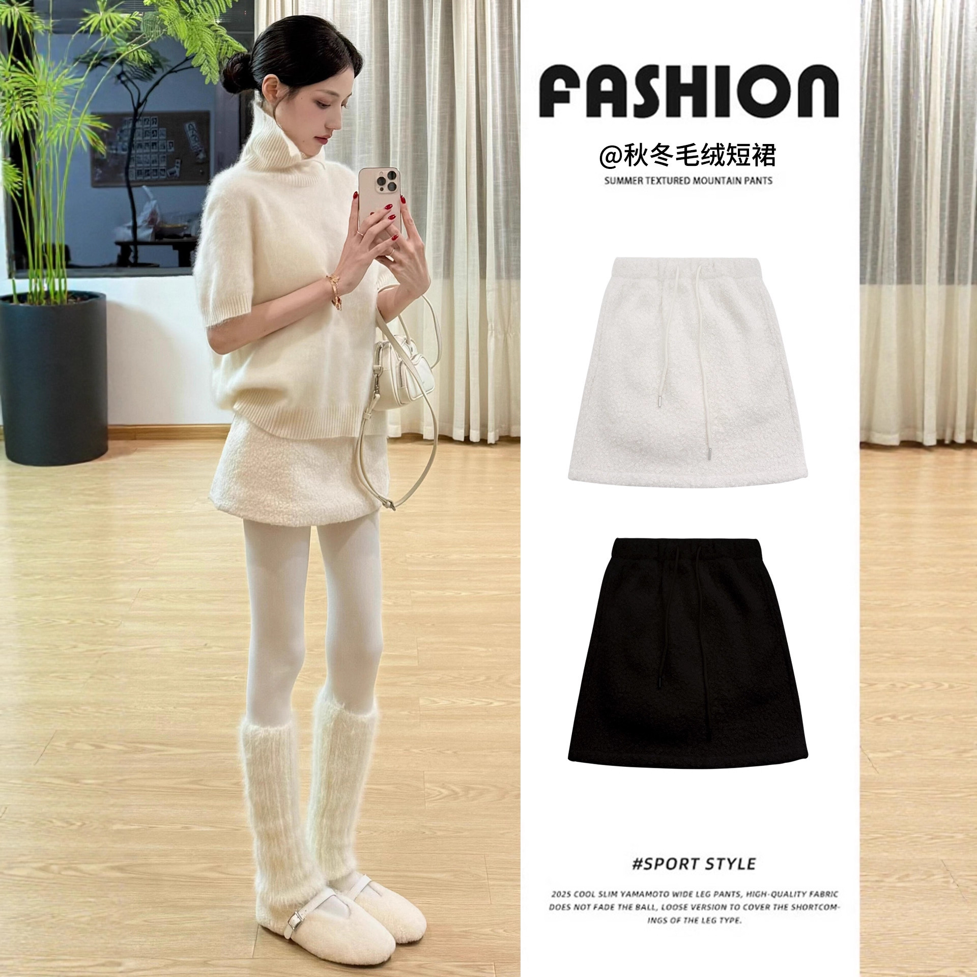 羊羔毛绒包臀短裙女秋冬季2025年新款修身显瘦a字小个子半身裙子