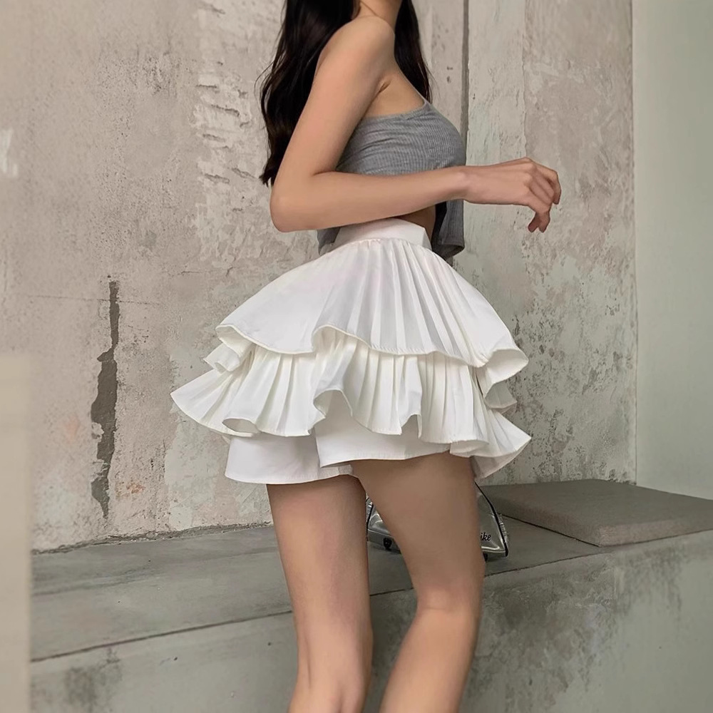 夏の新作パンツスカート、スイートニッチチュチュスカート、プリーツケーキショートスカート、レディーススカート