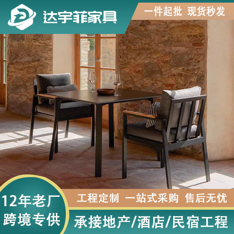 屋外テーブルと椅子の庭の露天防雨日焼け止めの外にコーヒーミルクティー店のアルミ合金ガーデンのシンプルなテーブル椅子を並べます。