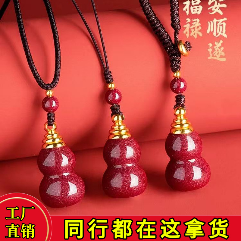辰砂ひょうたんペンダントキーホルダー携帯電話ペンダント男性と女性の干支年紫金砂ひょうたんネックレスペンダントペンダント