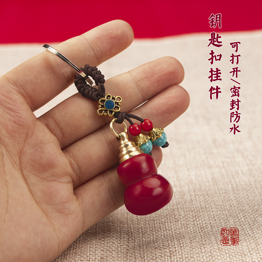 朱砂葫芦ペンダント空瓶、紫金砂を入れるのに使用可能、十二支キーホルダー、福禄ネックレス、卸売、開運