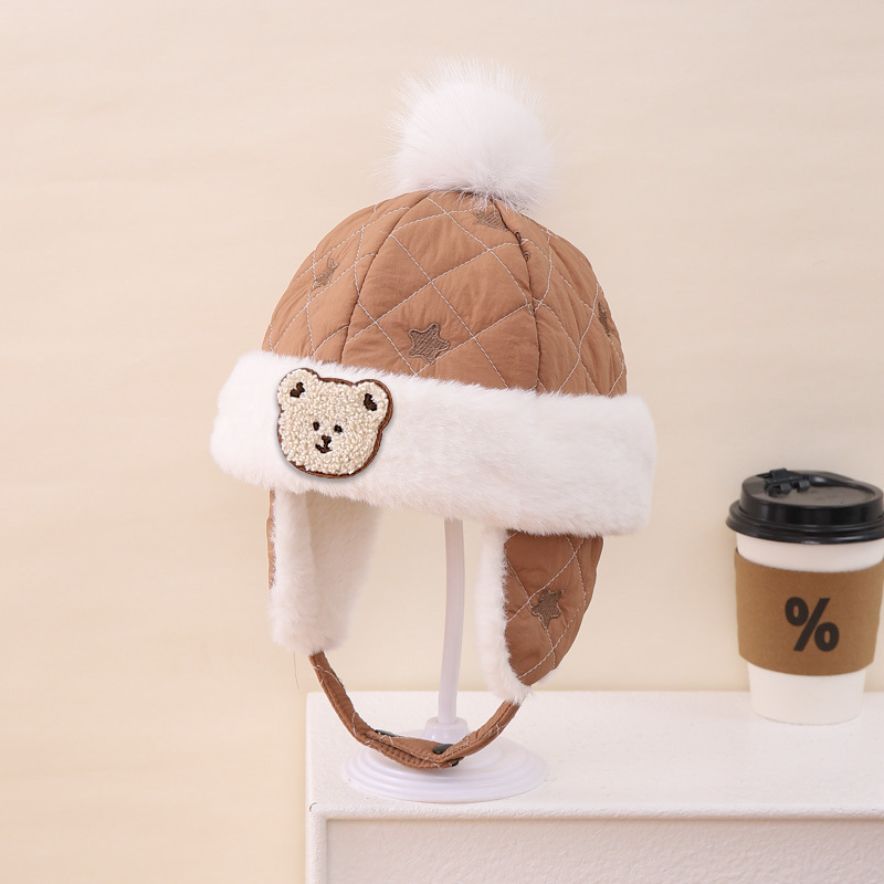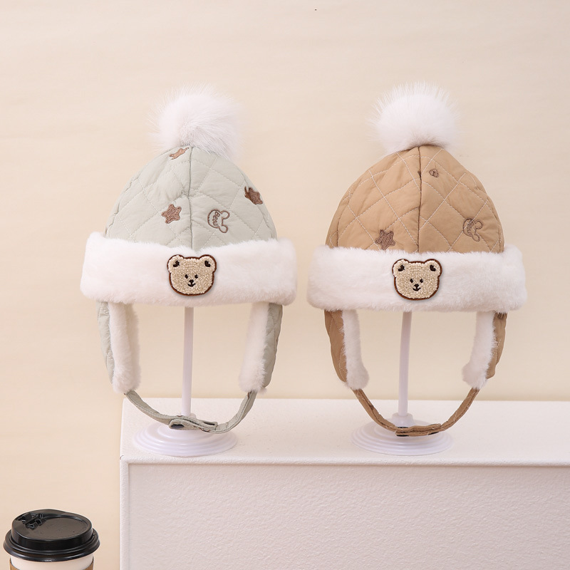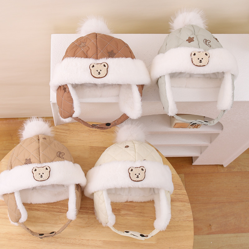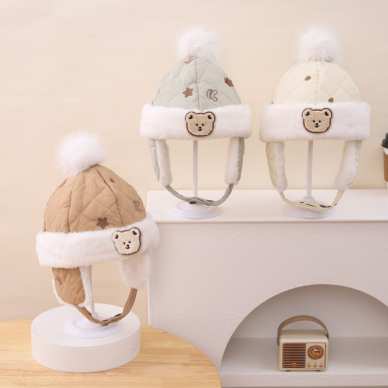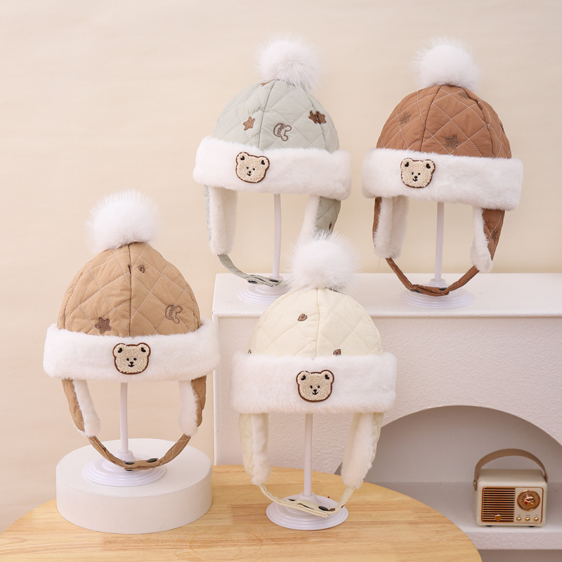 漫画の刺繍の熊のファッションの百合の赤ちゃんの耳の雷の前線の帽子の漫画の子供の大きい毛のボールの形のかわいい潮流