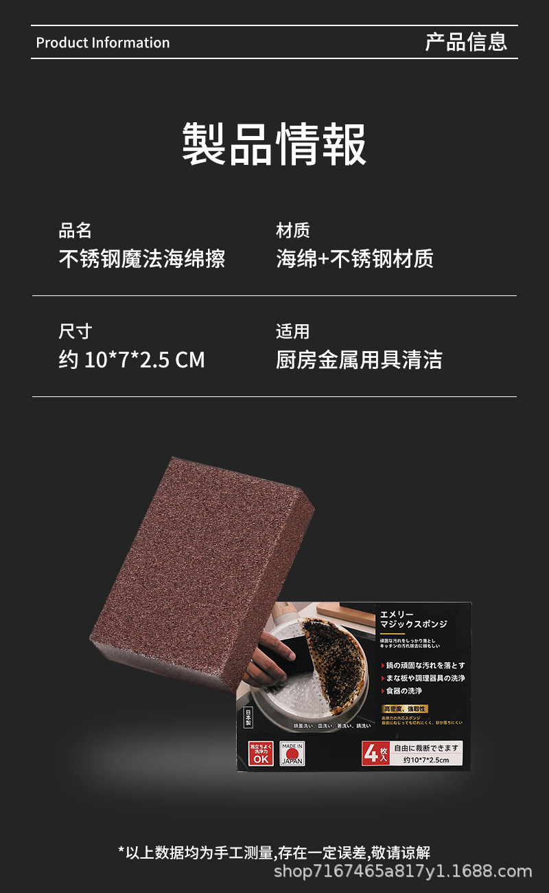 日本kamijo镜面海绵擦金刚砂玻璃浴室镜子水垢清洁魔力擦去污除垢