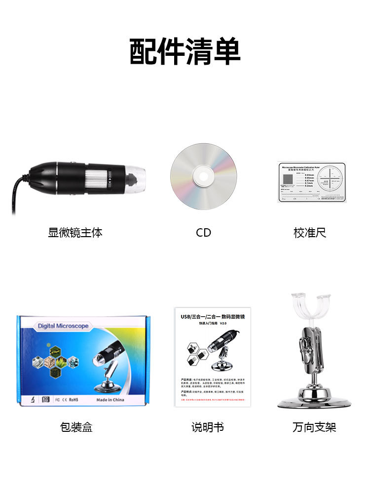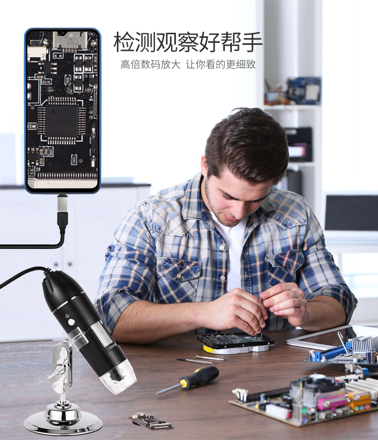 现货X4D数码USB显微镜三合一1000倍电子手机显微镜1600维修放大镜