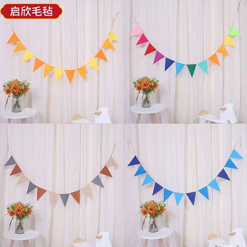 雰囲気感写真道具フェルト三角旗誕生日パーティー部屋飾り幼稚園カラーフェルト旗