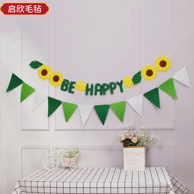 Ins誕生日装飾カラーフェルト拉旗マカロン不織布児童満1歳プレゼント配置カラー旗拉花