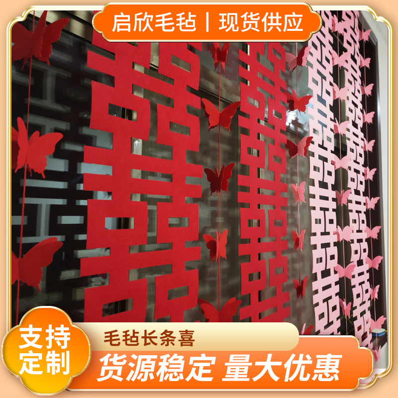 結婚部屋の配置装飾の長さは男女の寝室のホテルの結婚の新しい部屋の喜字フェルトの長さの喜字です。