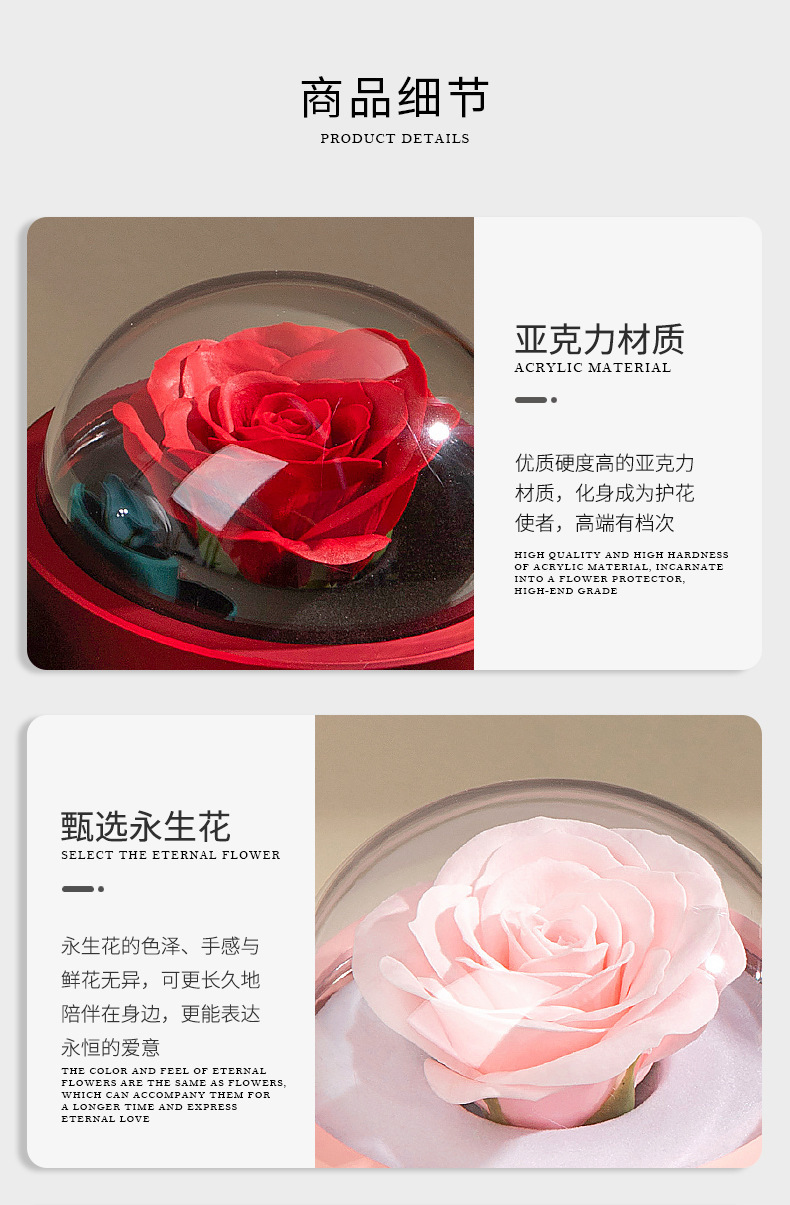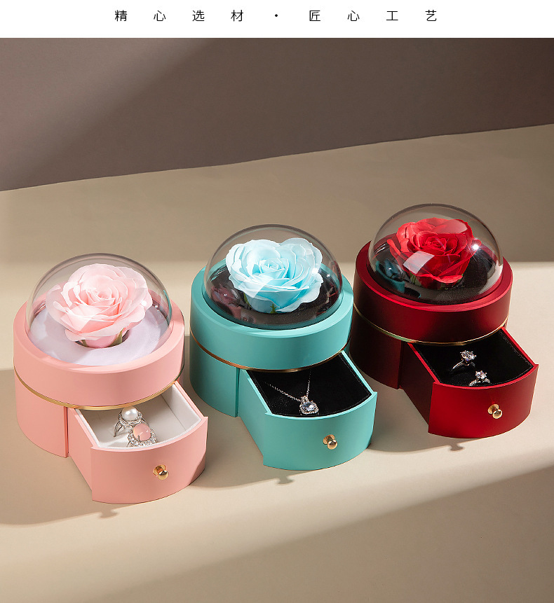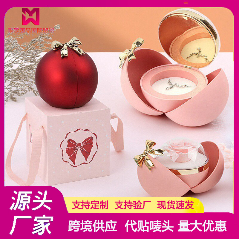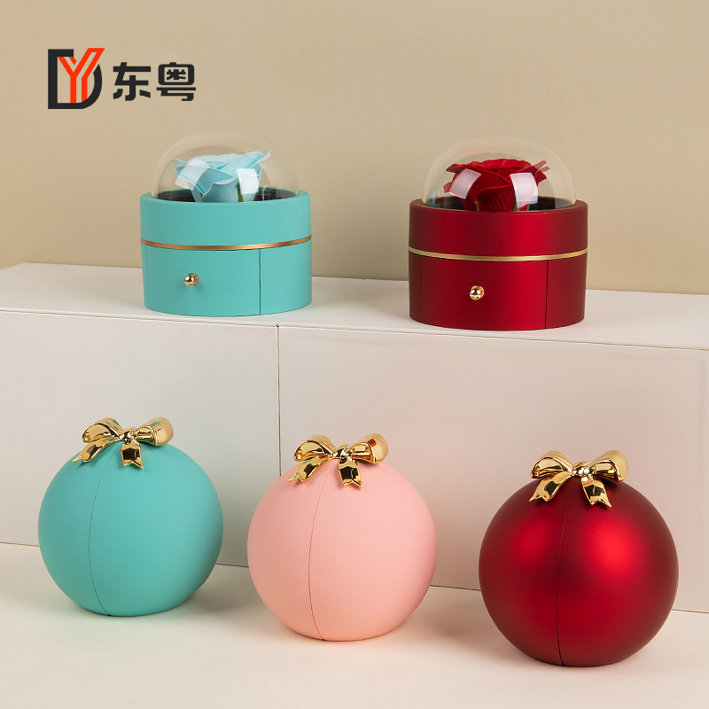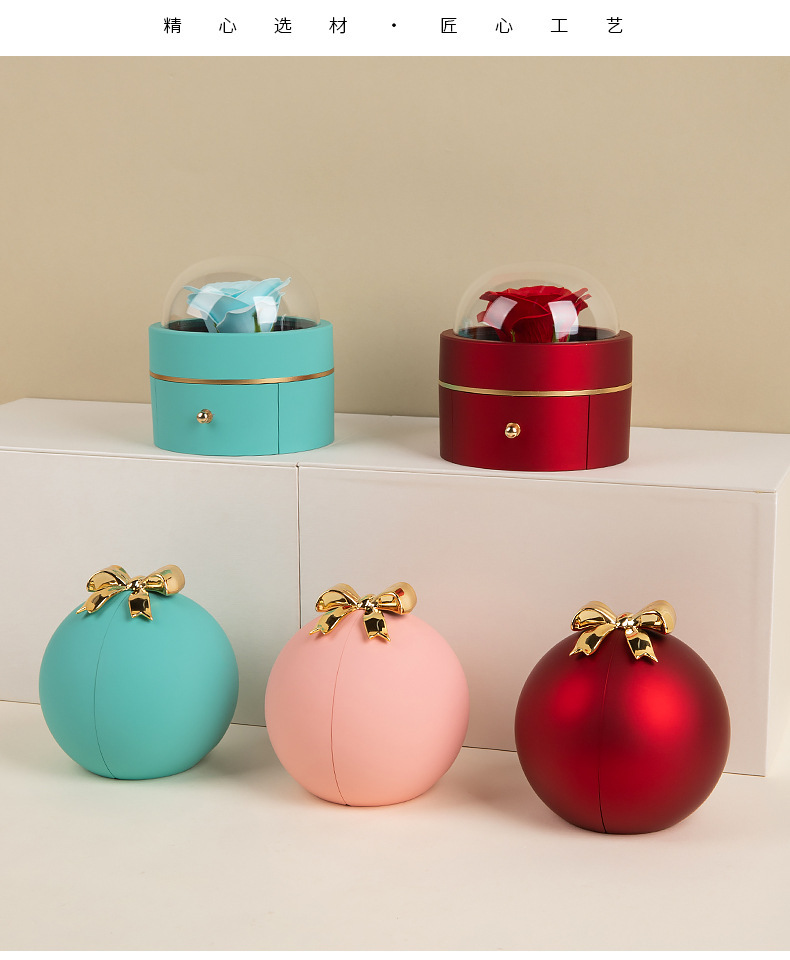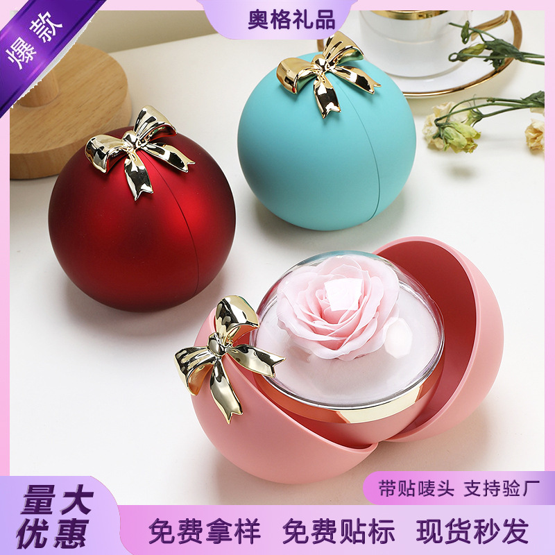 越境球形蝶結び二重開永生花アクセサリー箱クリスマス新年七夕バレンタインデー520プロポーズ指輪