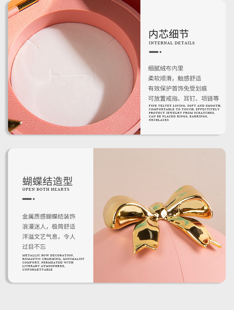 新款蝴蝶结玫瑰花首饰盒圆形戒指盒磁吸圣诞项链盒子情人节礼物盒