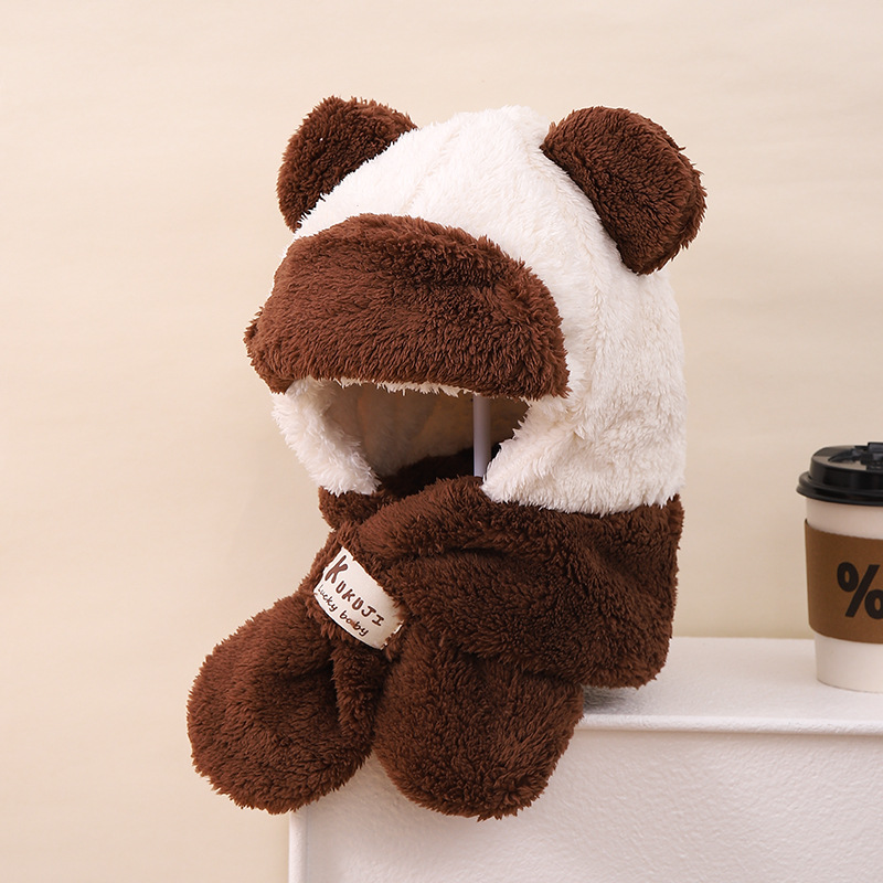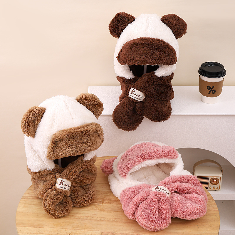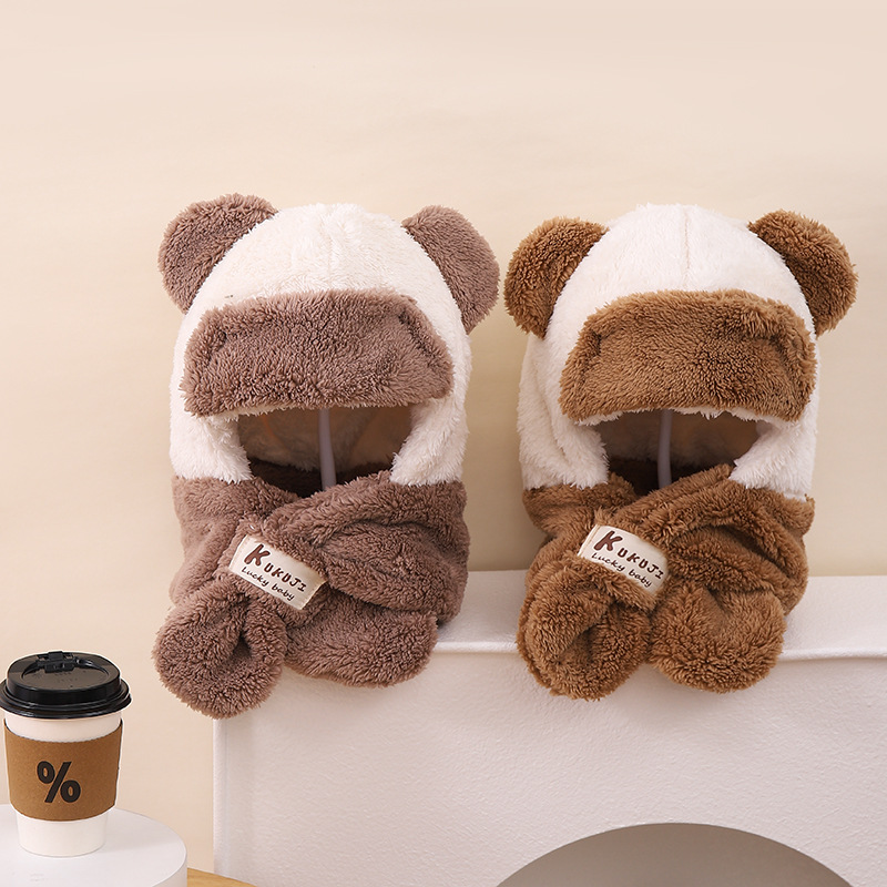 漫画ぬいぐるみ熊秋冬赤ちゃん帽子子供マフラーワンピースベルベット子供帽子毛むくじゃら保温