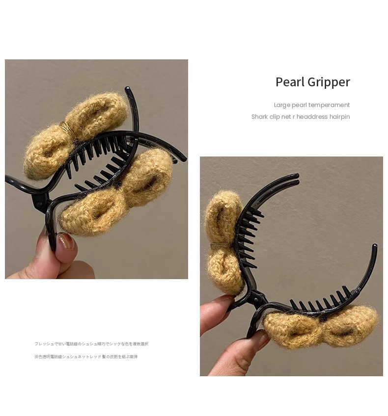 秋冬用ぬいぐるみ風リボン付きヘアクリップ、女性用後頭部シャーククリップ、2025年新作、高級感のある小香風ヘアアクセサリー