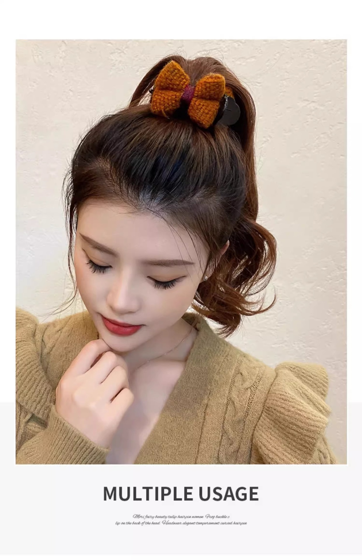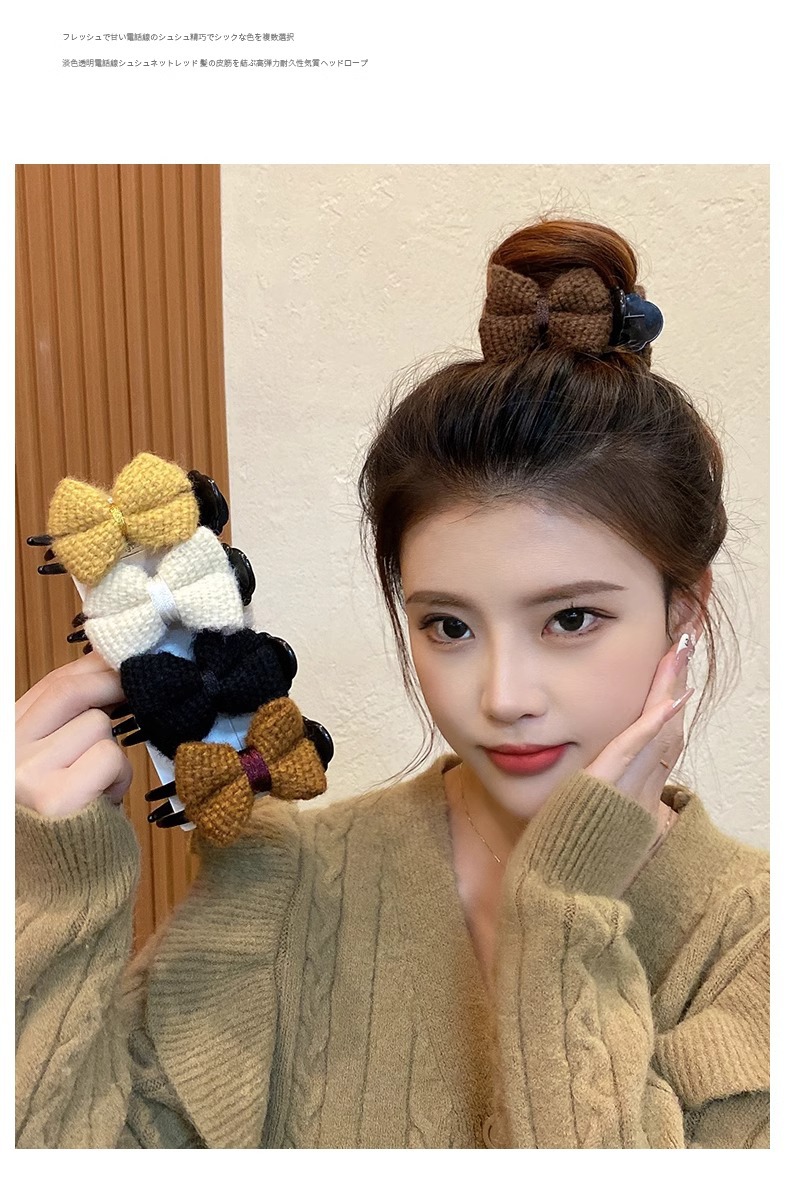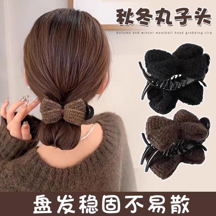 レトロ毛糸蝶結びクリップ頭飾りヘアクリップ丸子頭高級感ヘアピン秋冬後頭部クリップ
