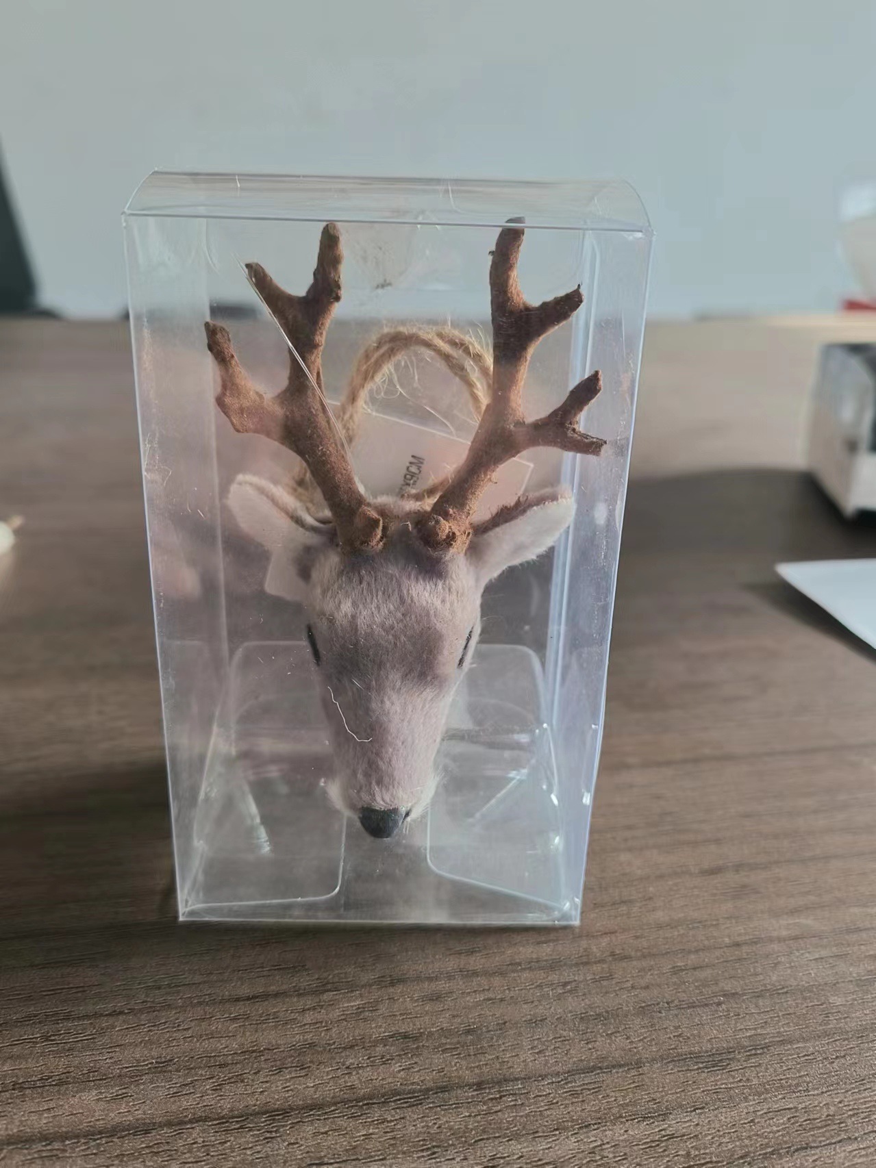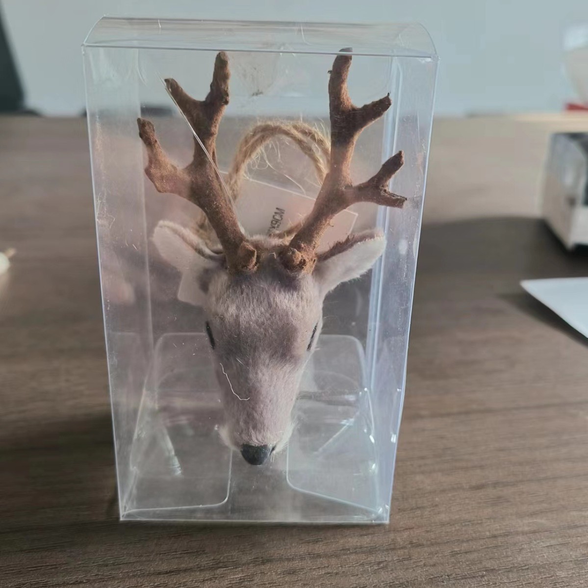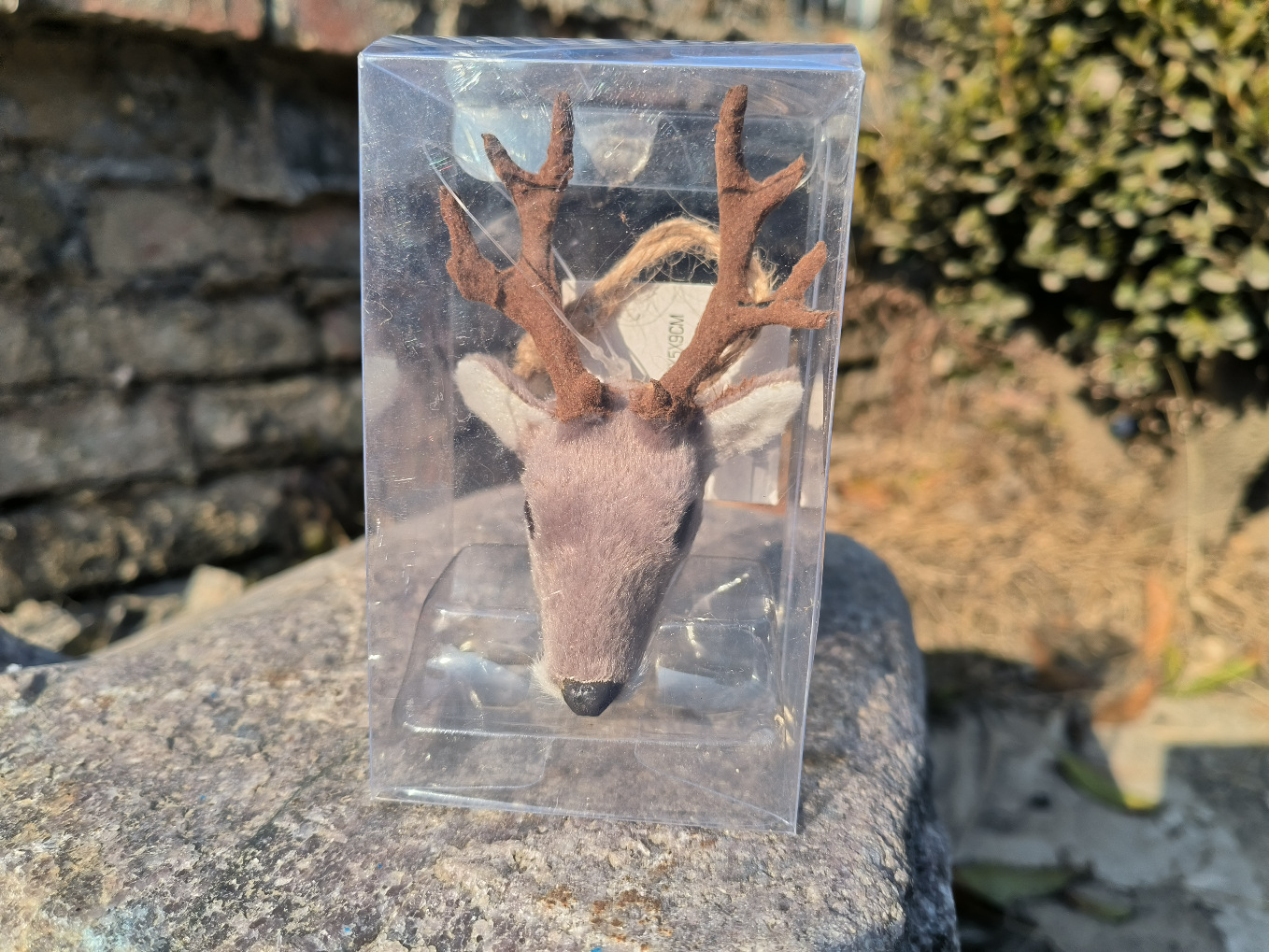 棕色小迷你鹿头,背部内含磁铁,可以做冰箱贴挂饰,还配有麻绳页可以作为挂件使用,是居家装饰的小礼品,本产品配套PVC透明盒包装,立显礼品档次,可以做儿童情侣互送礼品。