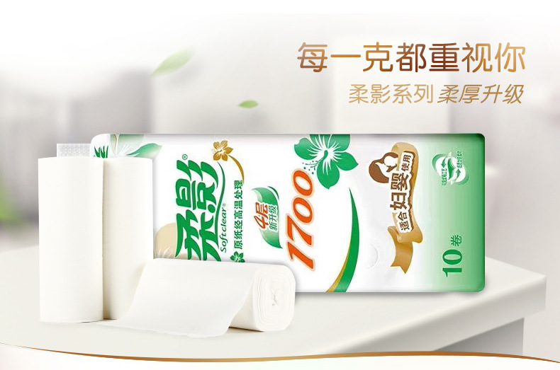 心相印柔影トイレットペーパー四層厚さ1700グラム一提無芯ロール紙家庭実恵装トイレトイレットペーパー