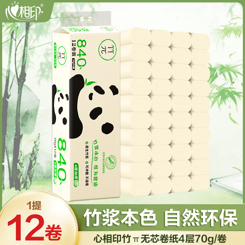心相印竹π纸巾竹浆本色无芯4层卷纸云感系列手纸柔影厕纸批代发